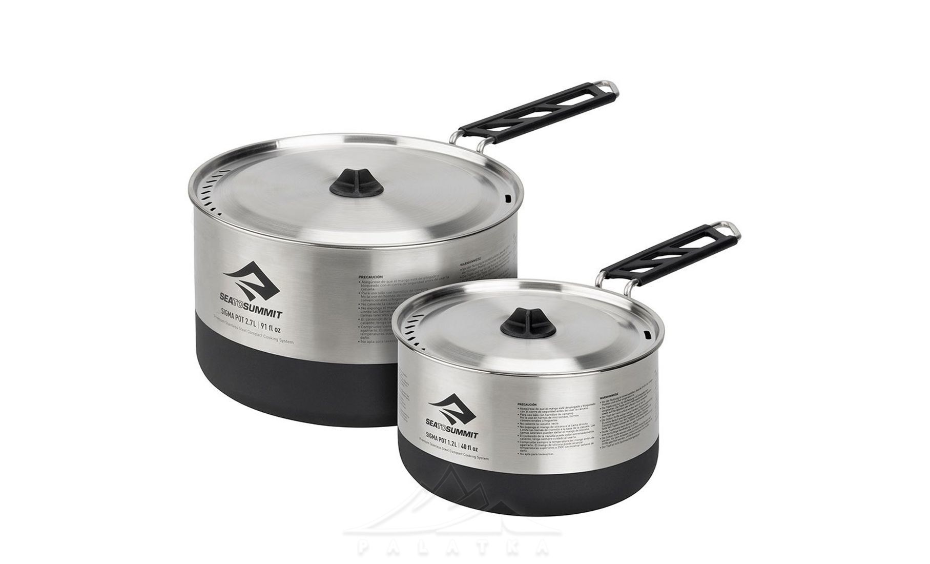 Набір каструль Sea to Summit Sigma Pot Set 2.0 (Silver) складається з двох каструль на 1200 мл та 2700 мл. Вони підійдуть як для дому, так і для походу.