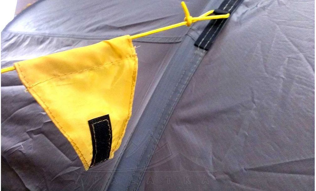 - Прапорці дозволяють вирішити вічну проблему розплутування відтяжок, що забирає час при установці. Перед складання намету досить швидко згорнути відтяжку, обмотати її прапорцем і зафіксувати текстильною застібкою липучкою. При наступній установці намету акуратно зафіксовані відтяжки легко і швидко можуть бути приведені в робоче положення, або залишатися акуратно згорнутими, якщо в них немає потреби.