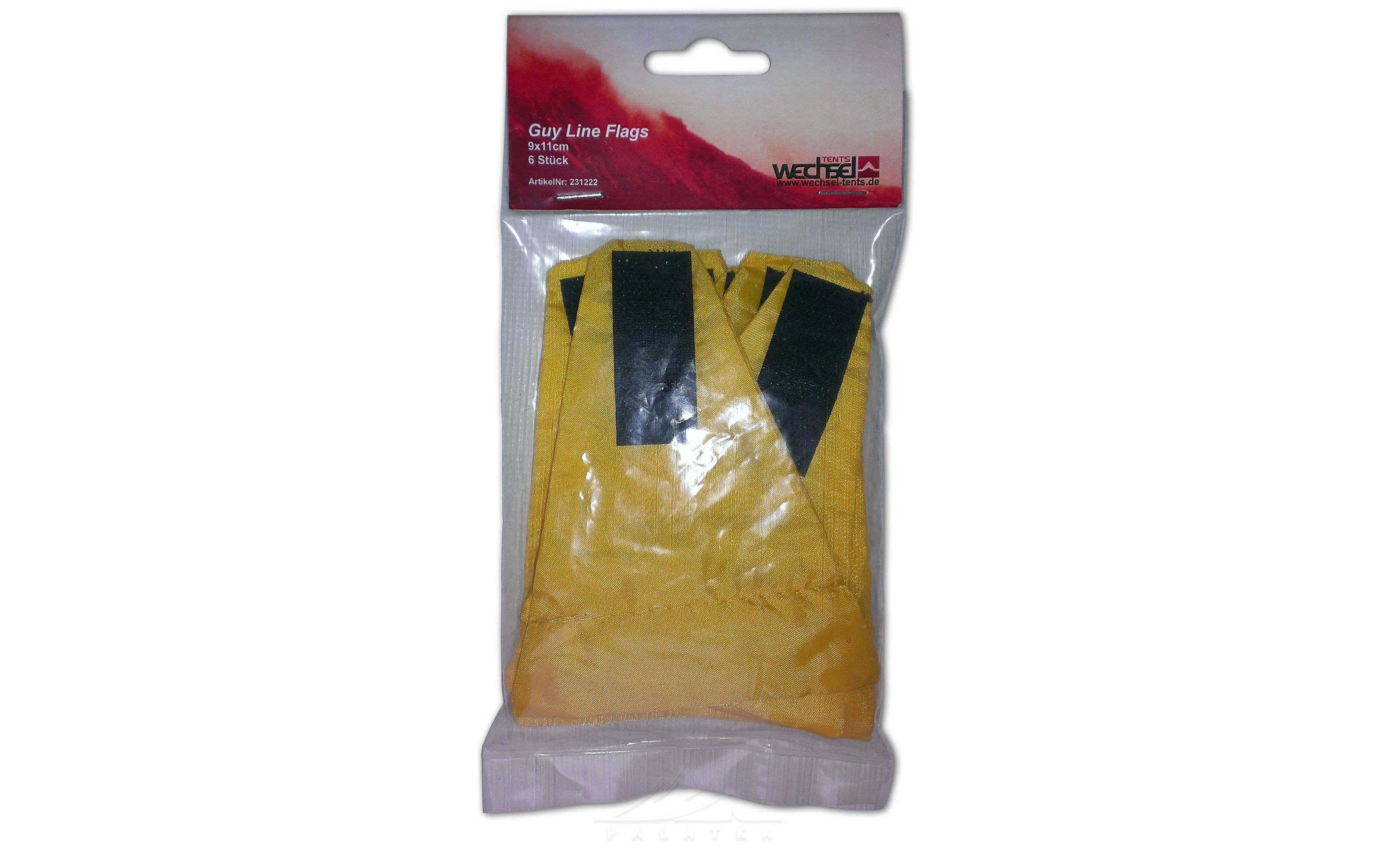 - Універсальні сигнальні прапорці Wechsel Guy Line Flags підходять до всіх наметів, що мають штормові відтяжки. Кожна штормова відтяжка просто вдягається в отвір прапорця і вже готова до використання.