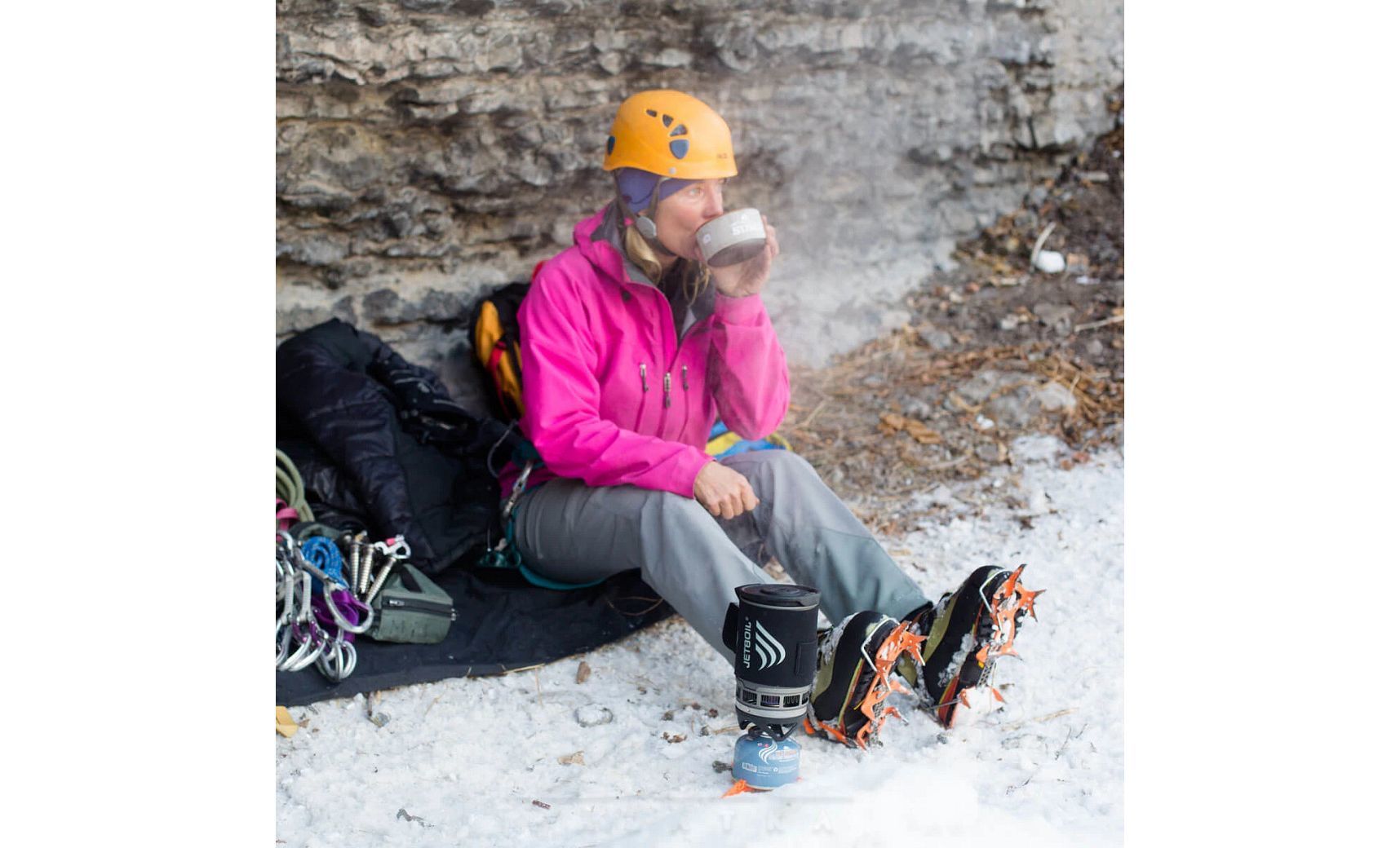 - Для підвішування системи приготування їжі при нервіний поверхні допоможе підвісна система JetBoil Hanging Kit (продається окремо).