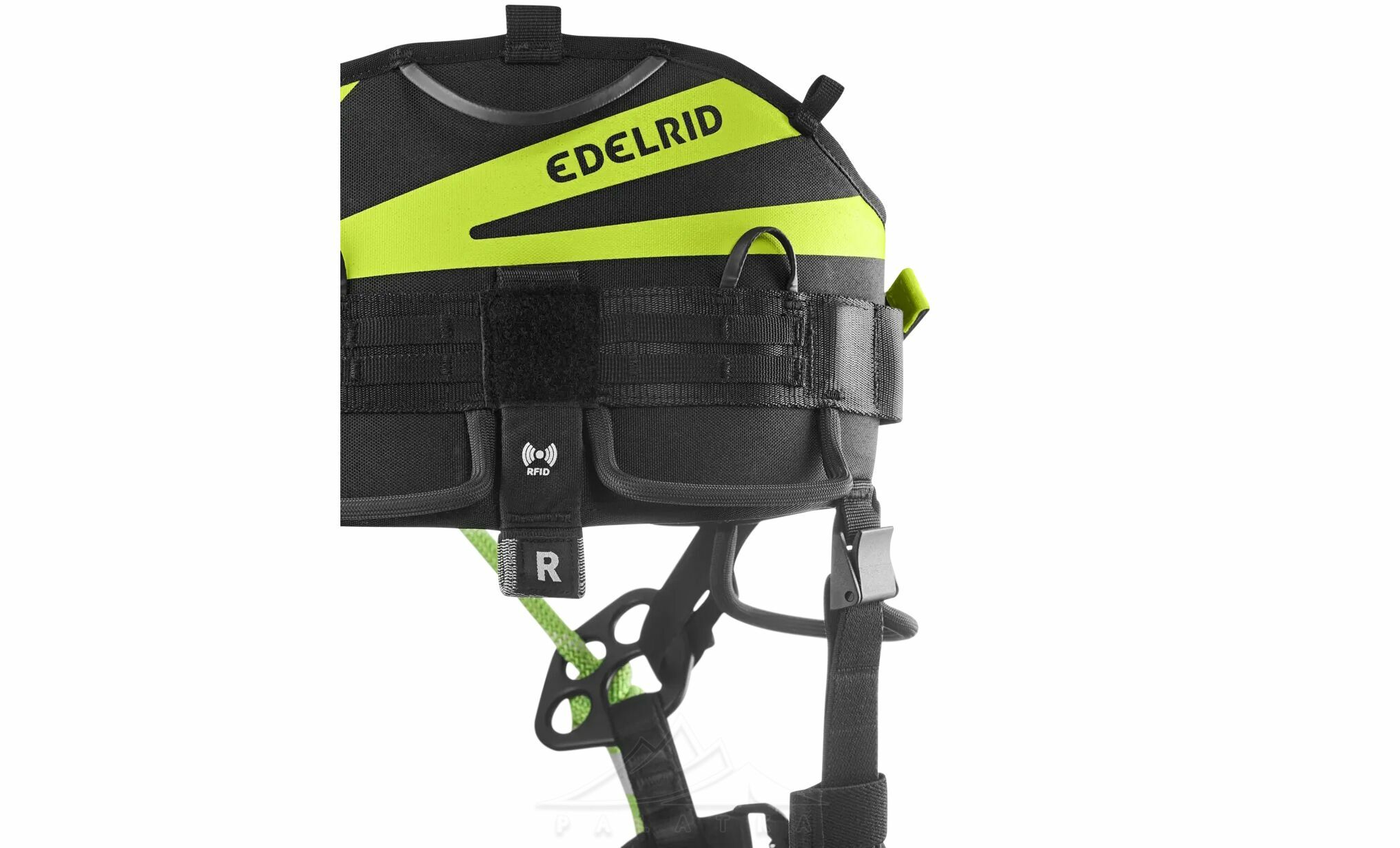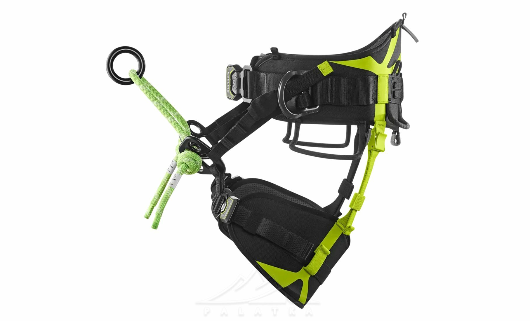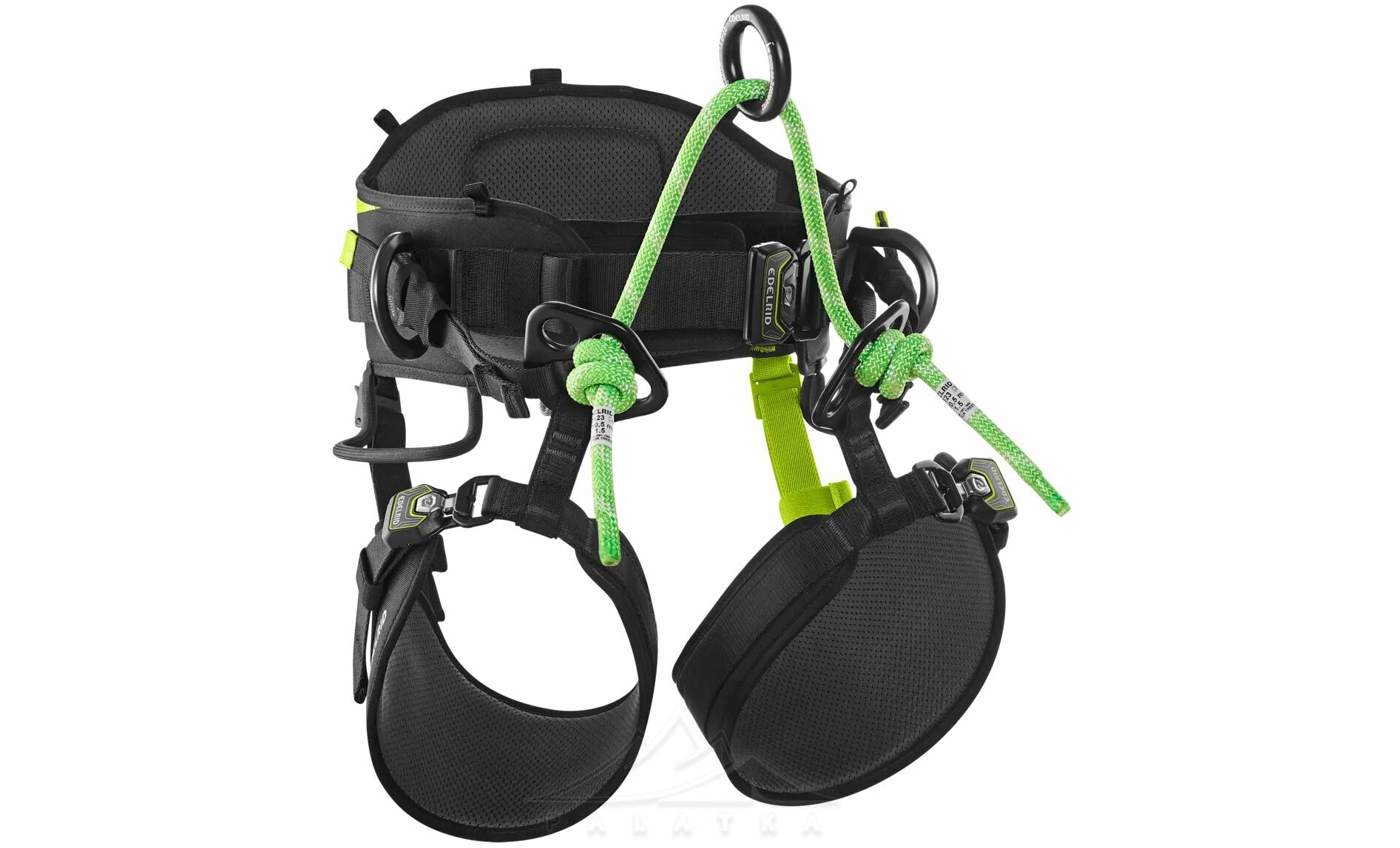 Edelrid TreeRex — легка й мінімалістична страхувальна система для арбористики, обладнана чотирма жорсткими поличками й численними петлями зі стропи для навішування спорядження.