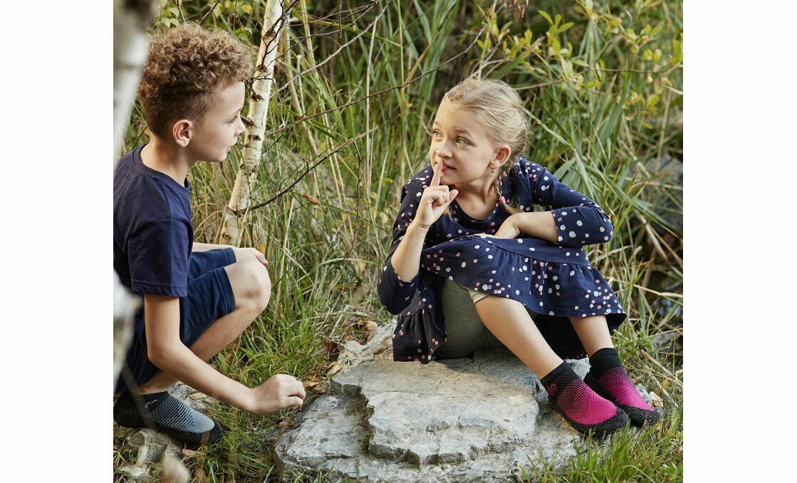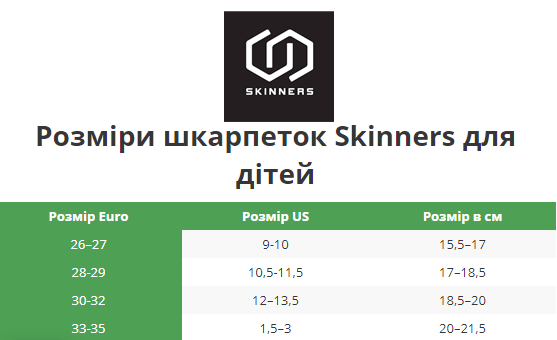 Skinners Kids 2.0 — дитяча версія оригінального barefoot-взуття у вигляді щільних шкарпеток з анти-абразивним шаром на підошві стопи. З устілкою. Чудова альтернатива змінним капцям для відпочинку в таборі після ходового дня, для недалеких виходів на природу (без складних рельєфів та екстримальних умов), для ігор та спортивних занять в приміщенні.