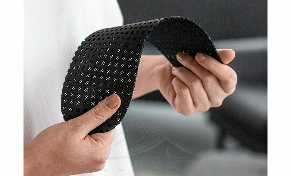 - підошва є водо-непроникною, щільною, з анти-ковзним рельєфом; дуже м'яка - повторює згини стопи під час руху