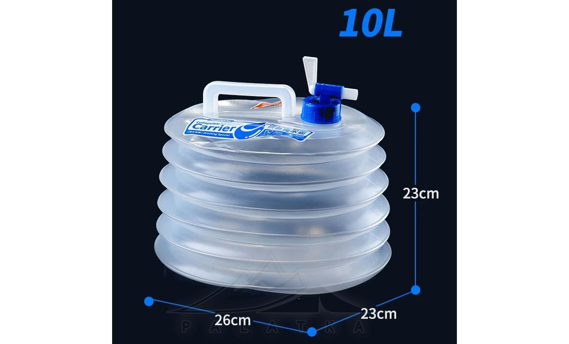 Naturehike NH14S002-T — складна каністра для питної води, що стане в нагоді для кемпінгу або в поході. В складеному стані займає мінімум місця, має зручний кран для наливання води.