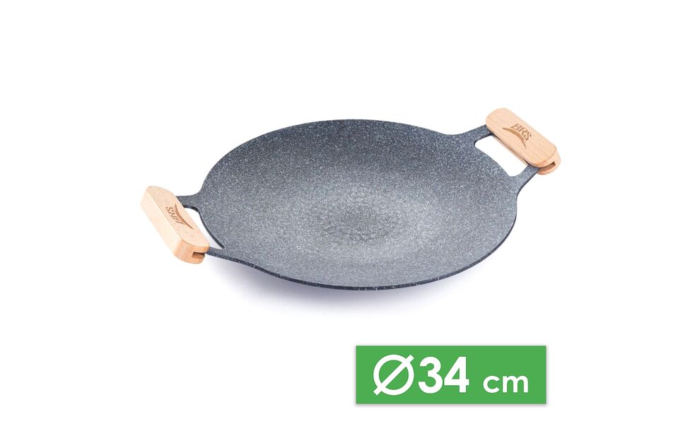 - Форма "садж" з легкою вогнутою поверхнею допомагає рівномірно розподілити олію та зменшити використання жиру.