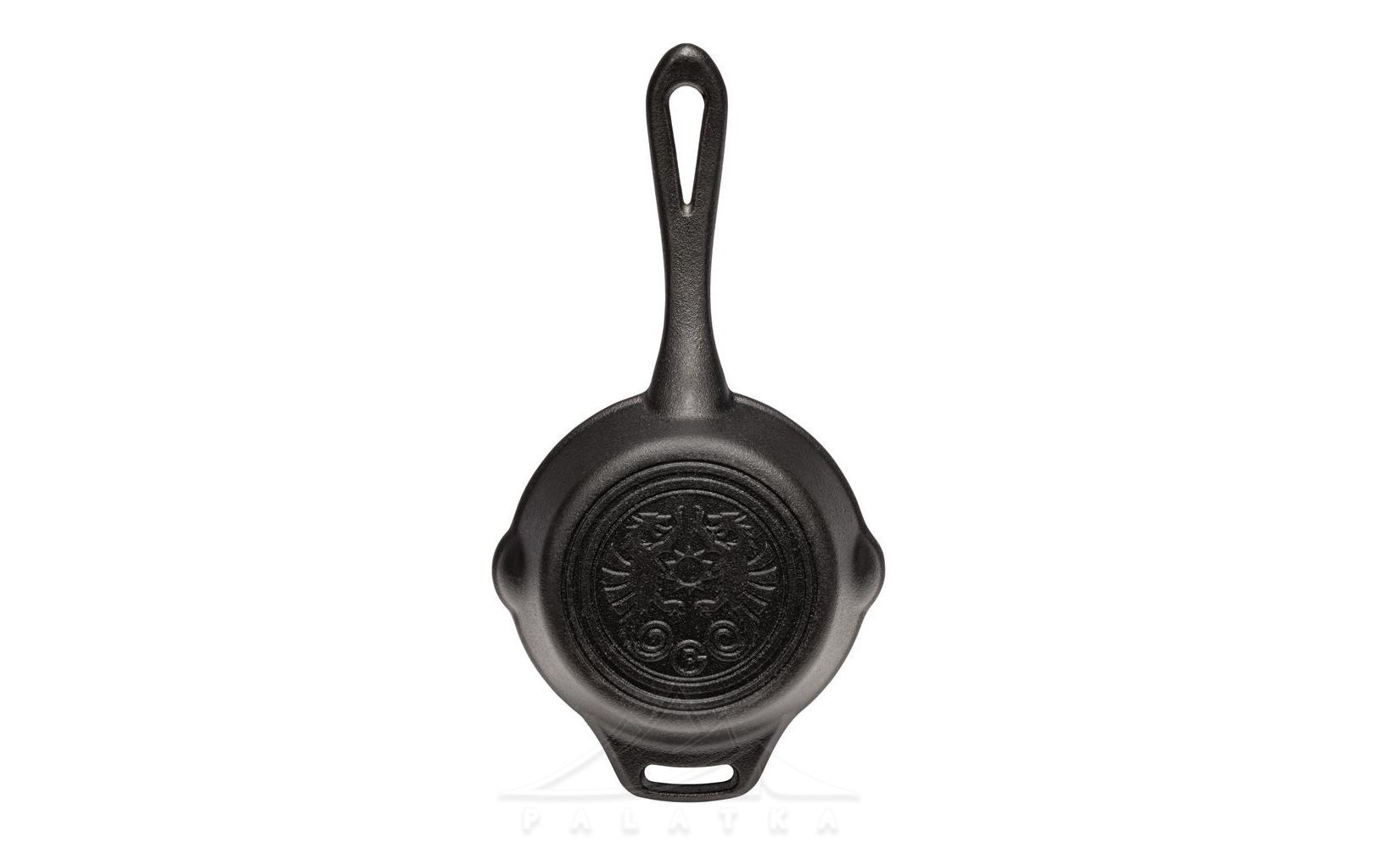 • Надійна лита довга та петлебодібна ручка з чавуну. Довга ручка дозволяє зручніше тримати сковорідку під час приготування їжі, та ставити на вогнище. Петлеподібна ручка - для фіксації над вогнем та підтримки посуду рукою.