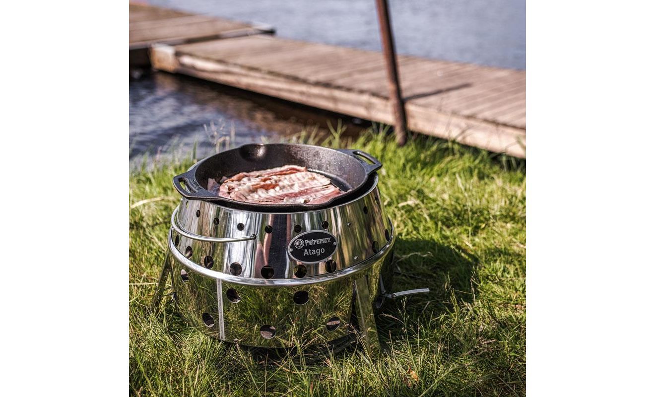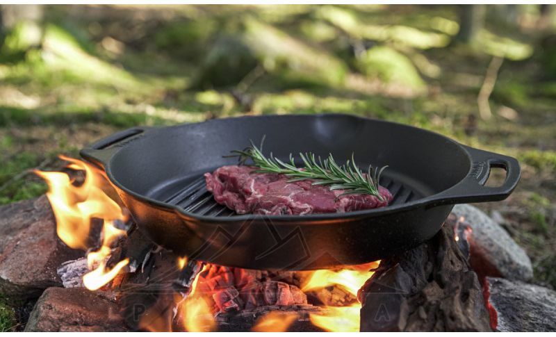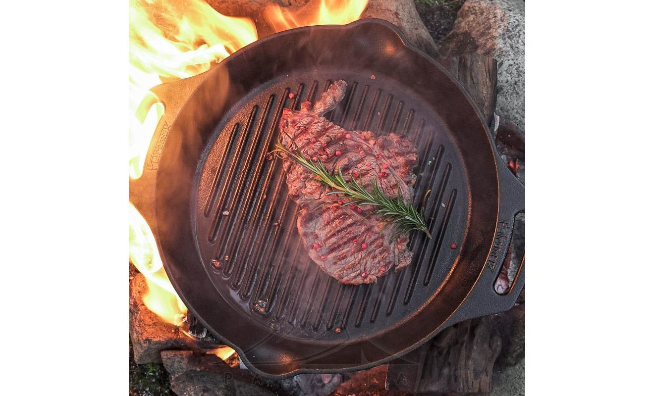 Сковорода-гриль Petromax Grill Fire Skillet — сковорода зі спеціальним ребристим дном та двома ручками-петлями, що робить її ідеальним обладнанням для смаження, тушкування, запікання або випічки з мінімальним додаванням жиру. Підходить до всіх типів варильних поверхонь, а також для приготування їжі на вогнищі.