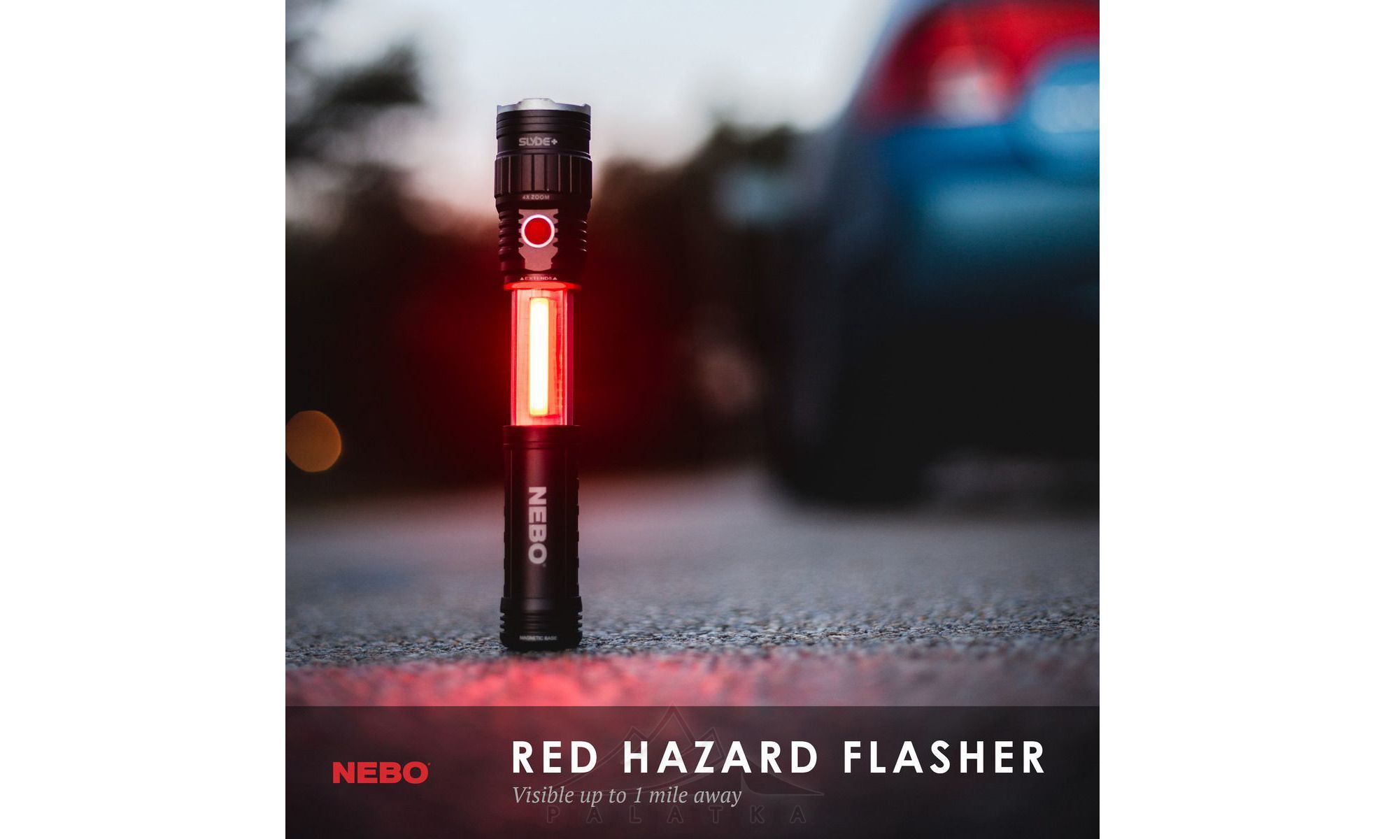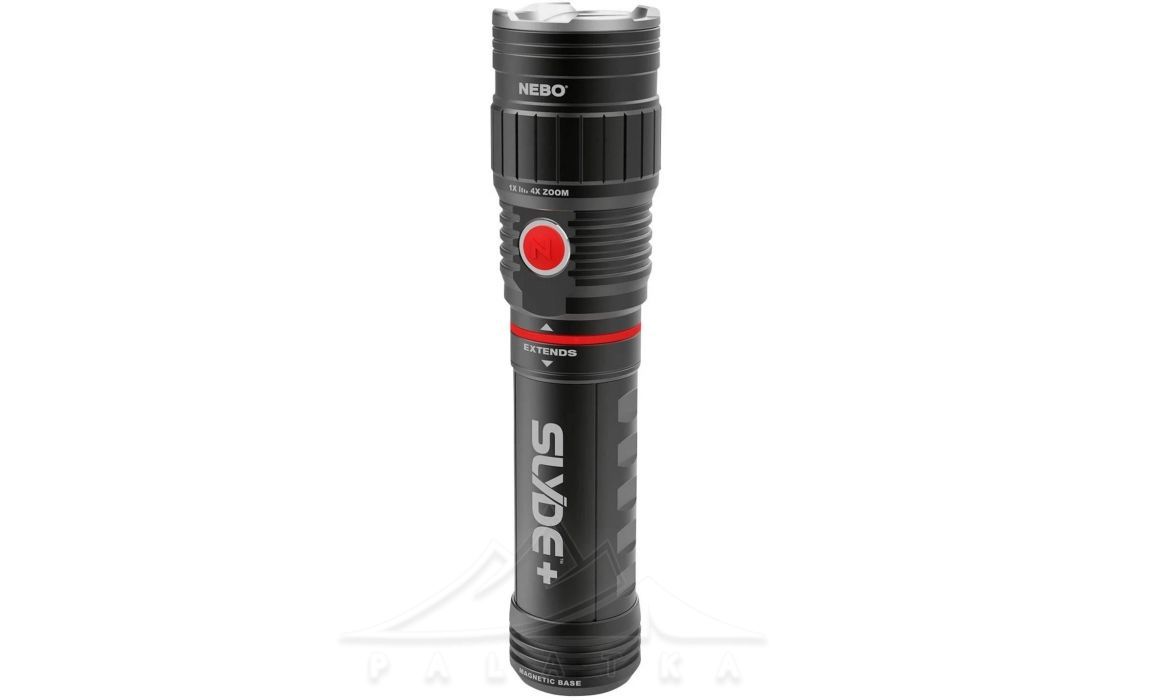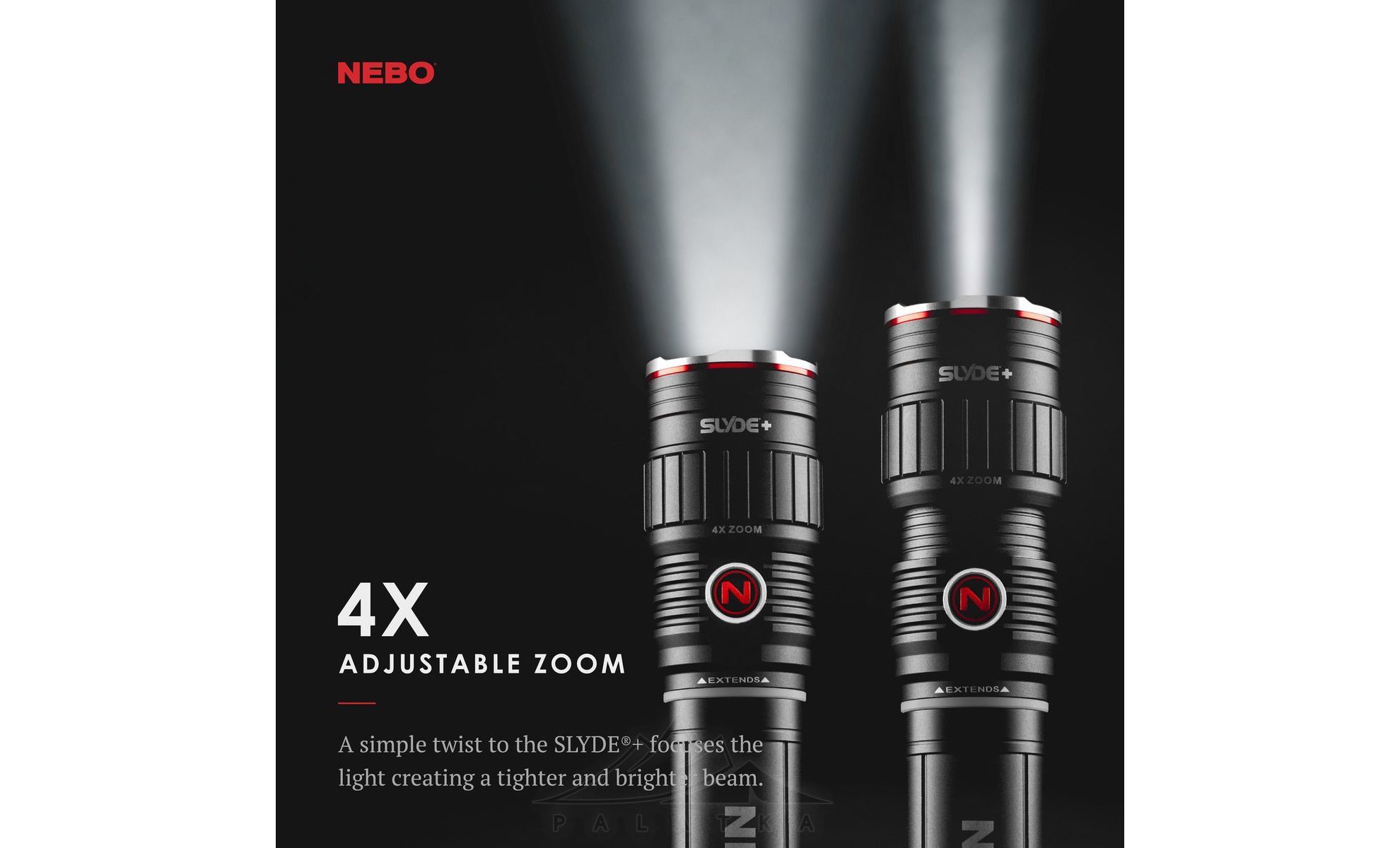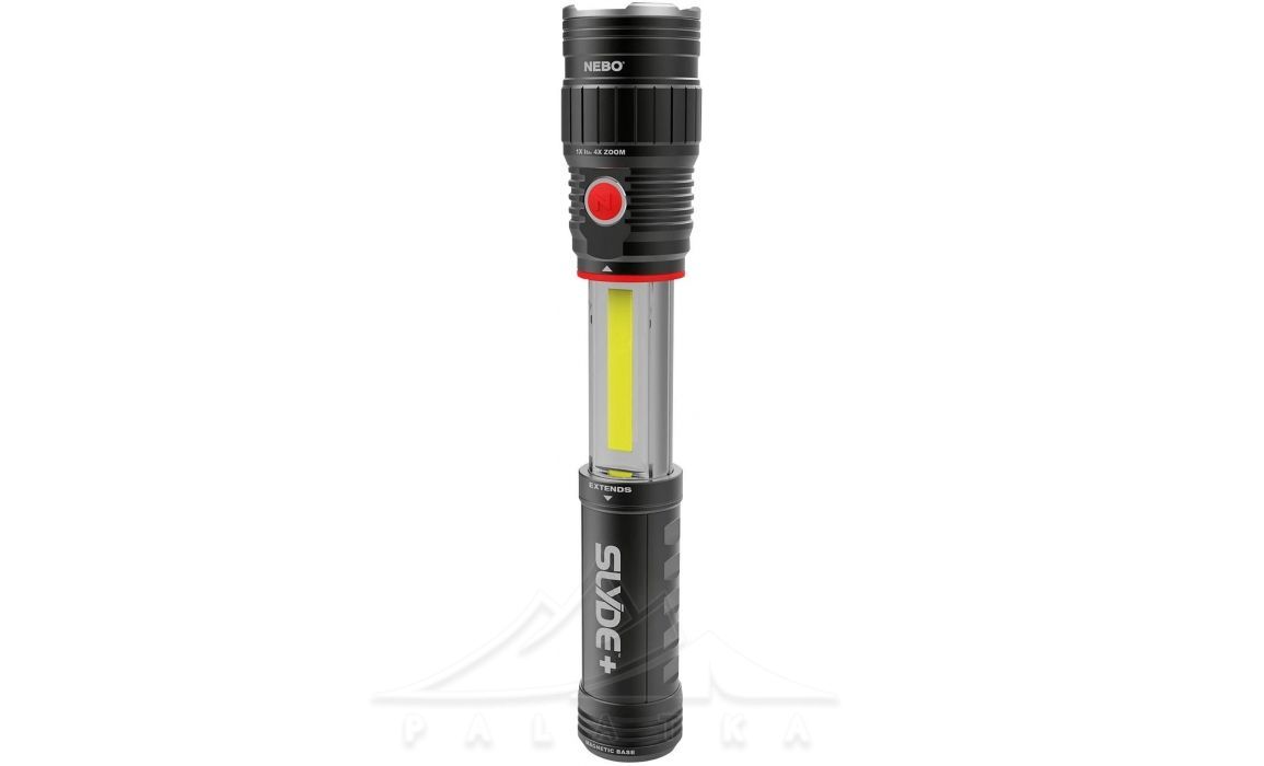 Ліхтар ручний Nebo Slyde + — універсальний EDC-ліхтар з розсувним корпусом, 4-кратним регульованим зумом та потужною магнітною основою. Підходить для повсякденного або робочого використання, а режим червоного світла може допомогти при екстрених ситуаціях.