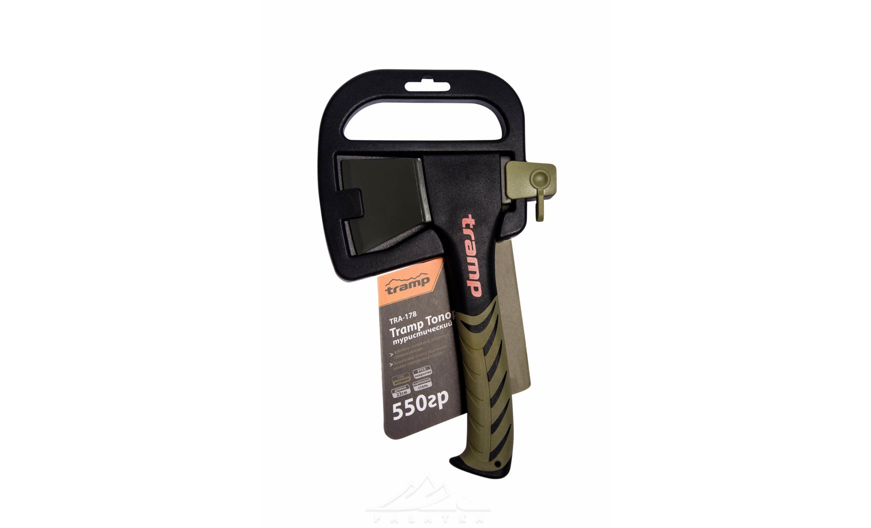Tramp TRA-178 — найкомпактніша туристична сокира в серії Tramp, з лезом з карбованої сталі. Підійде для рубки невеликих дерев, дрібних дров, хмизу.