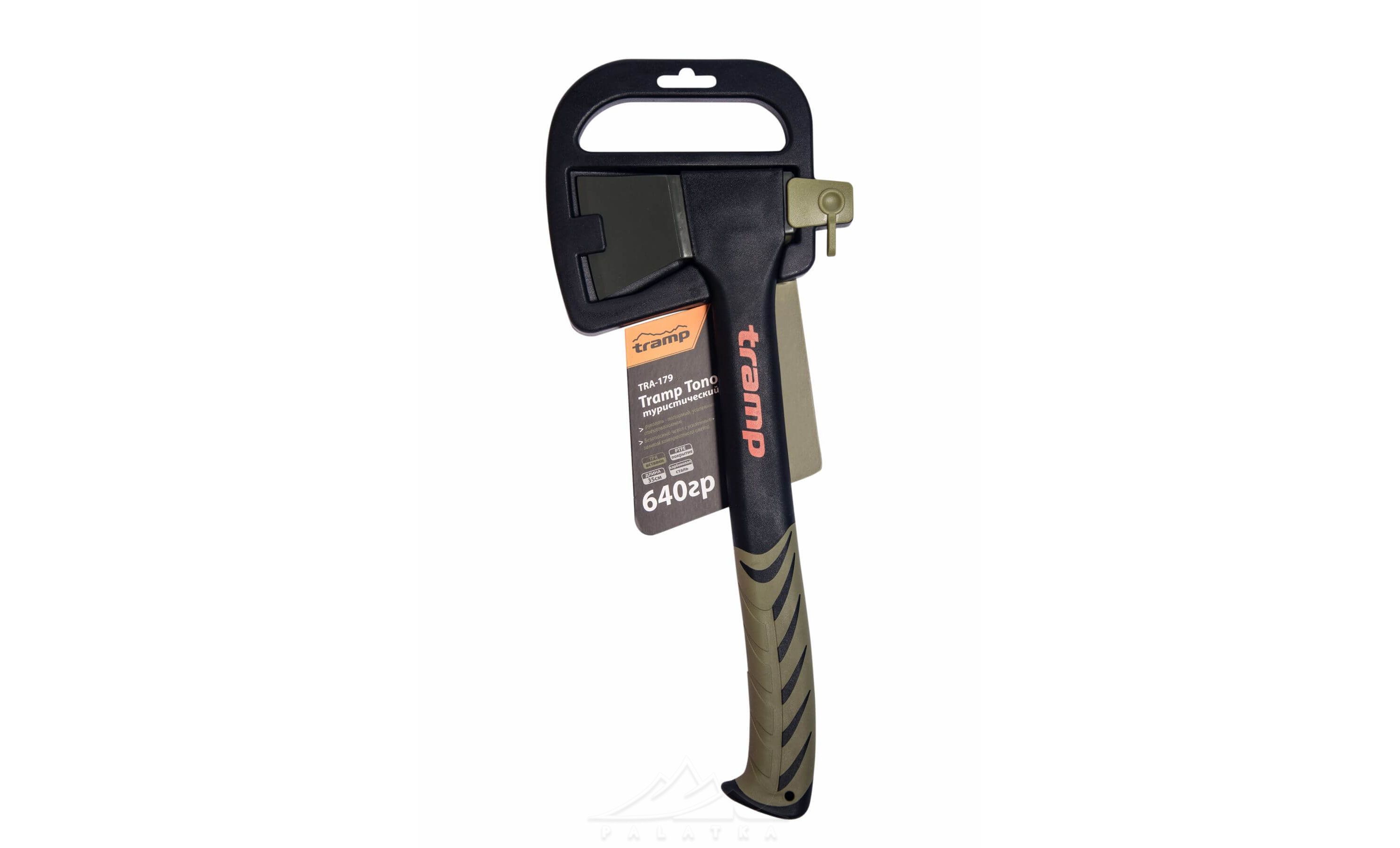 Tramp TRA-178 — туристична сокира з лезом з карбованої сталі та довгою ручкою. Підійде для рубки невеликих дерев, дрібних дров, хмизу.