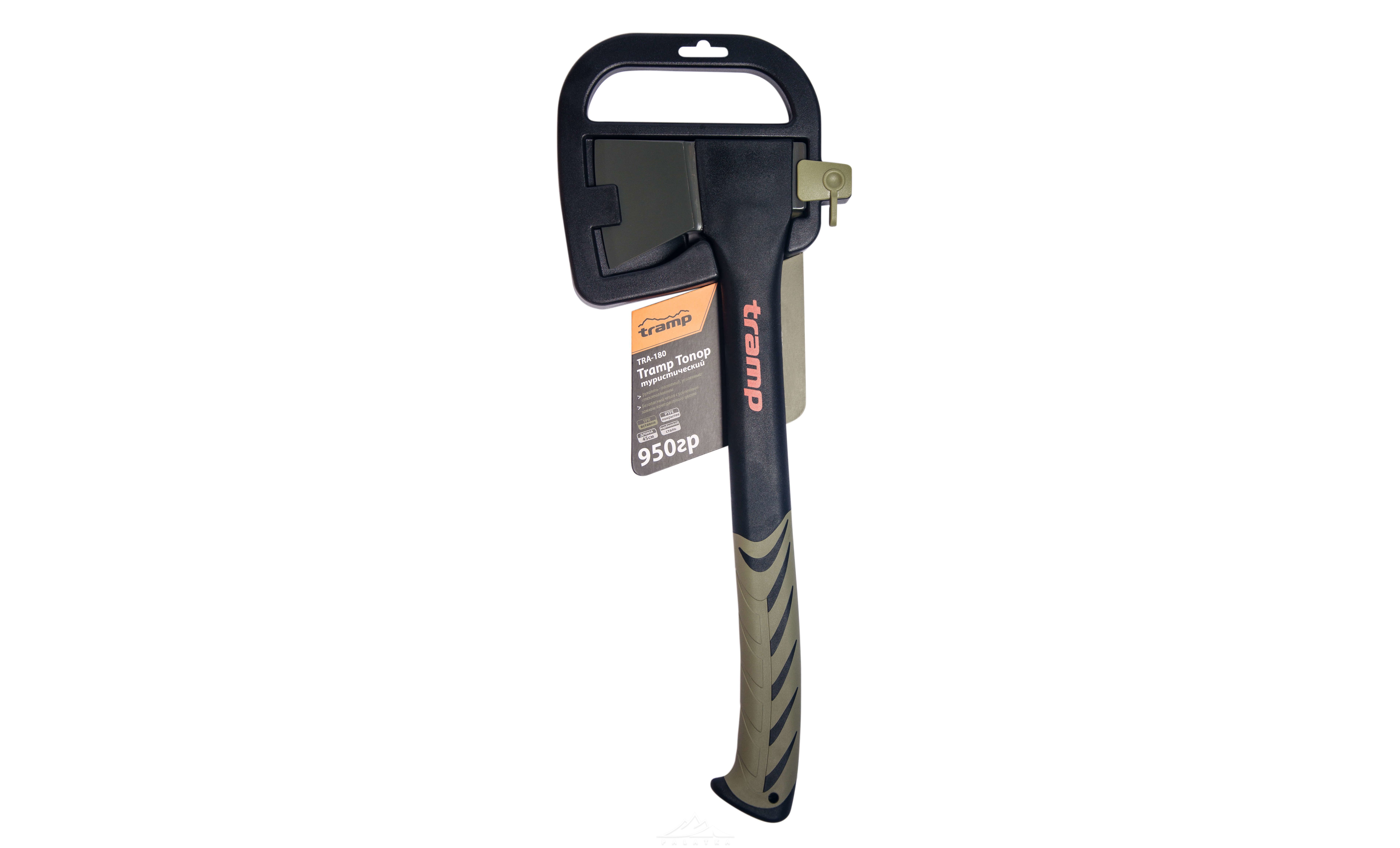 Tramp TRA-180 — туристична сокира з лезом з карбованої сталі та довгою ручкою. Підійде для рубки невеликих дерев, дрібних дров, хмизу.
