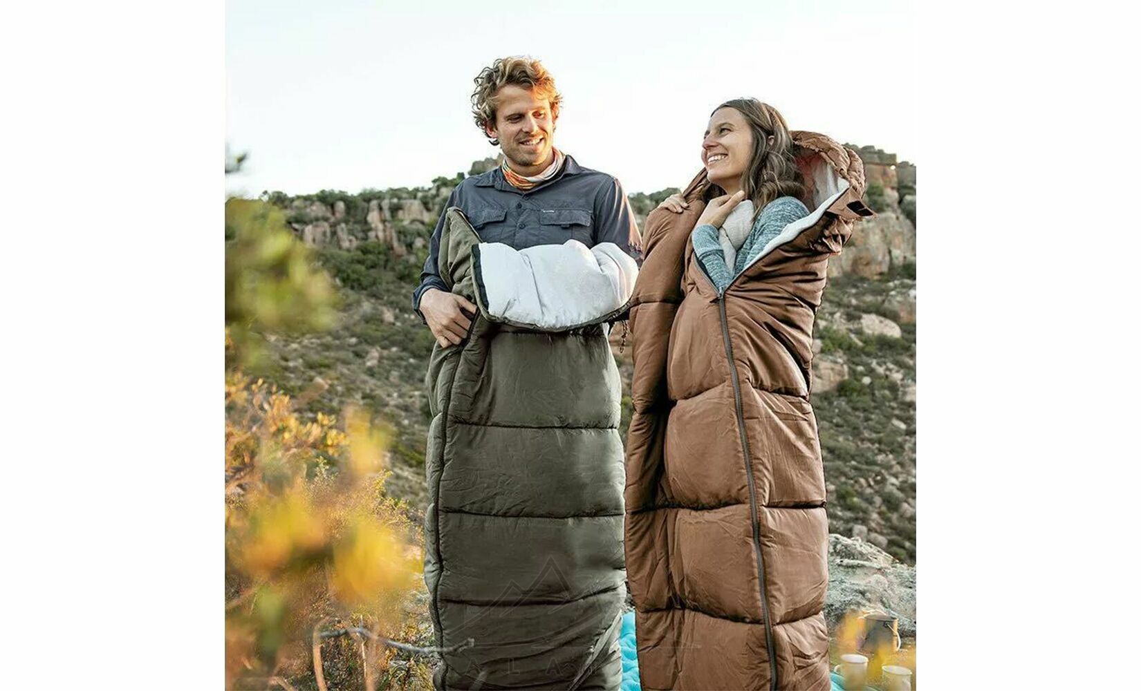- Лівий та правий спальники можна зістібнути разом і отримати один великий двомісний спальний мішок.