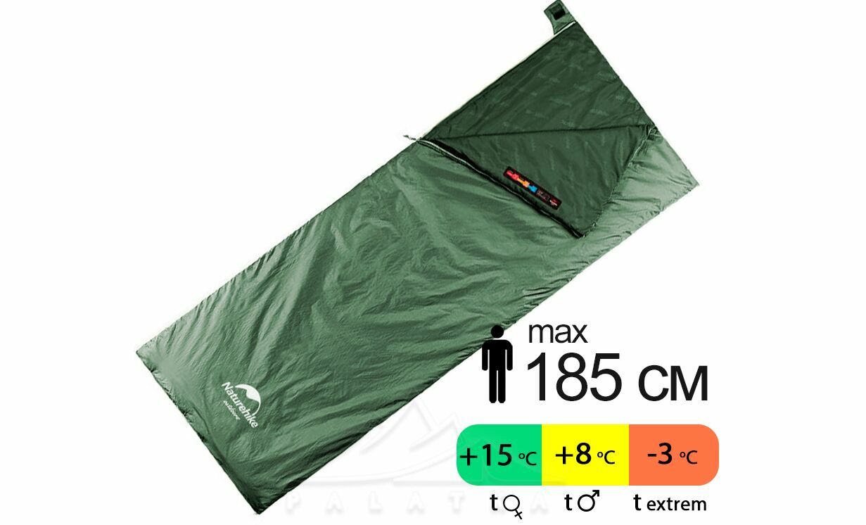 Літній кемпінговий спальник-ковдра Naturehike NH21MSD09 - LW180 M (Pine Green) до 8°C