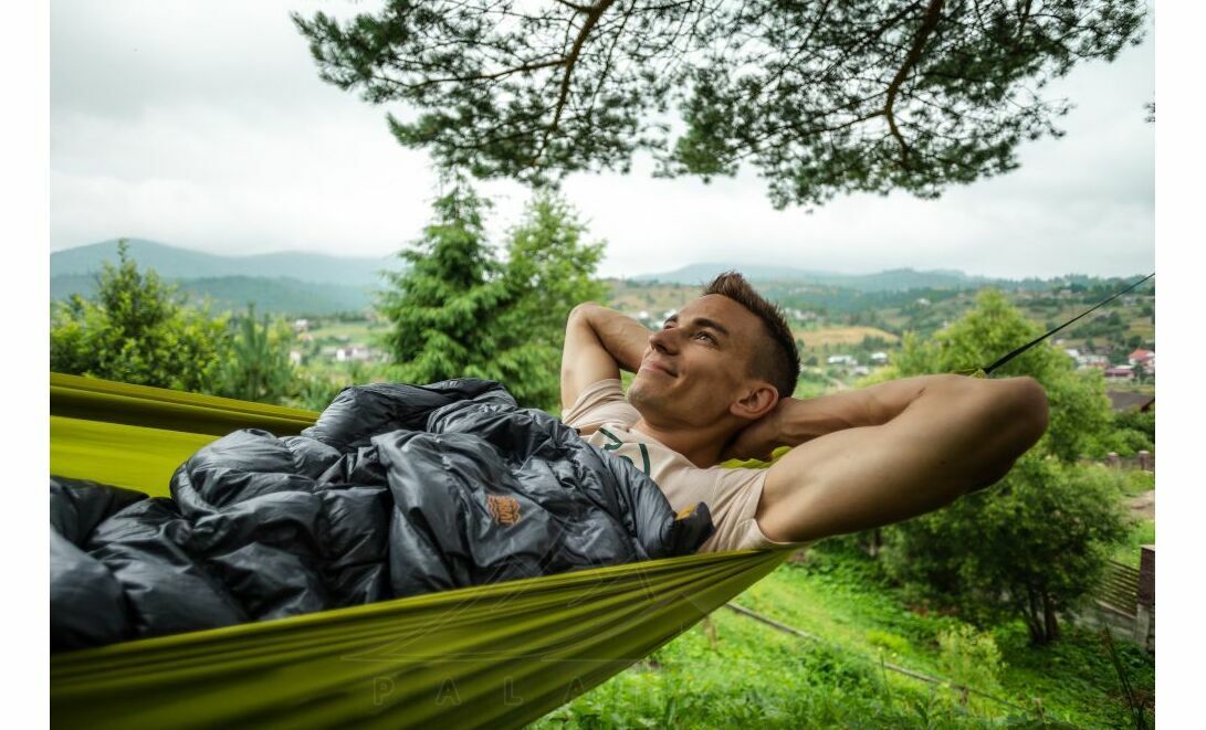 • У якості наповнювача використовується натуральний гусячий пух українського походження, який робить спальник легким та надійно зберігає вашу температуру.
