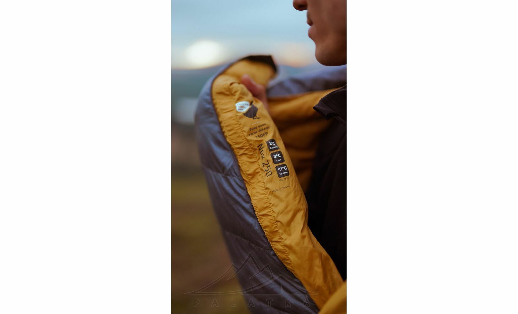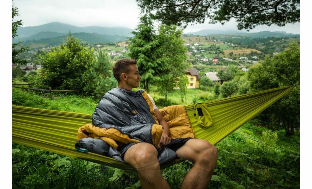 - У якості наповнювача використовується натуральний гусячий пух українського походження, який робить спальник легким та надійно зберігає вашу температуру.