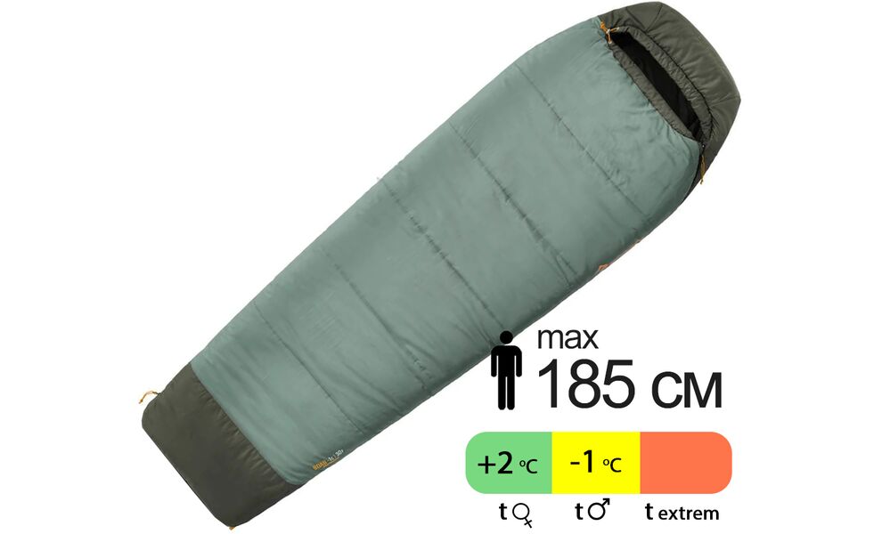- Синтетичний утеплювач краще підходить для вологіших умов, тому спальник практичний для кемпінгу й поїздок, де спорядження може контактувати з сирістю