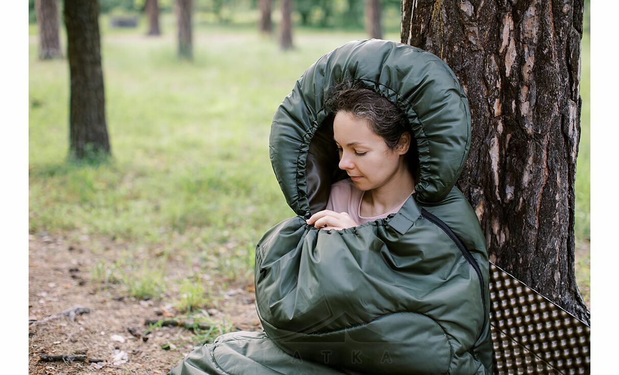 - Форма кокона ідеально підходить для походів і зберігає тепло всередині.