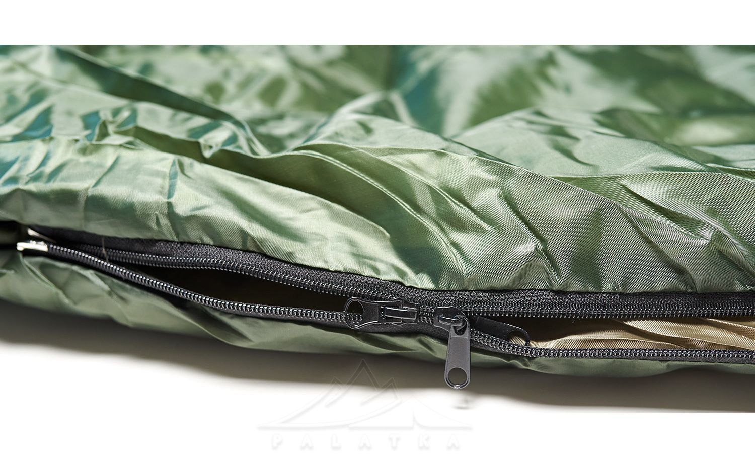 - Блискавка, що займає 3/4 довжни спальника та 2 бігунки. Вона дозволяє з'єднувати лівосторонній та правосторонній спальники між собою.
