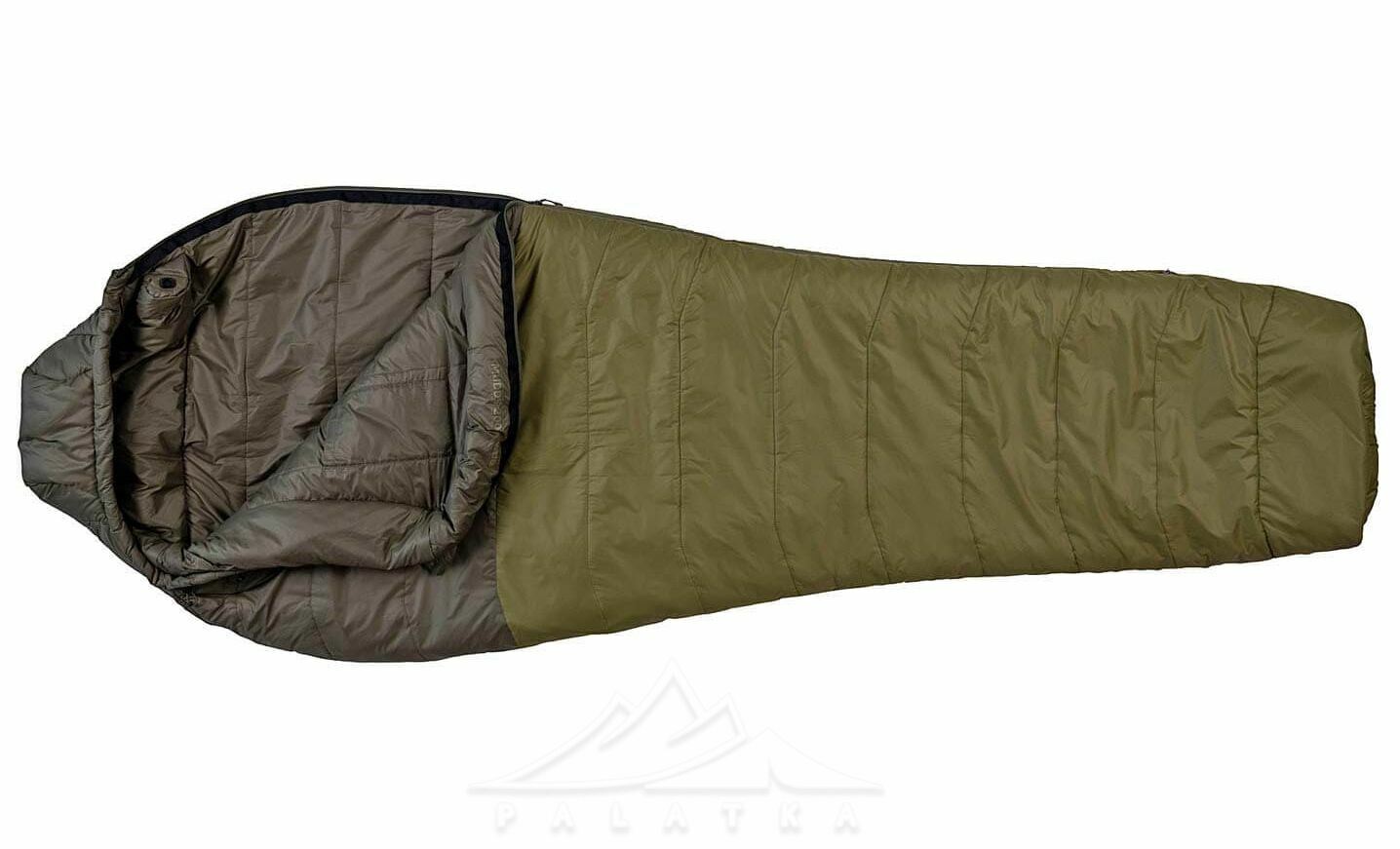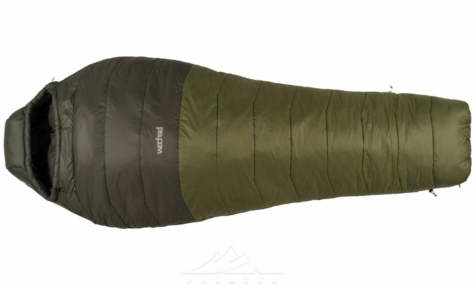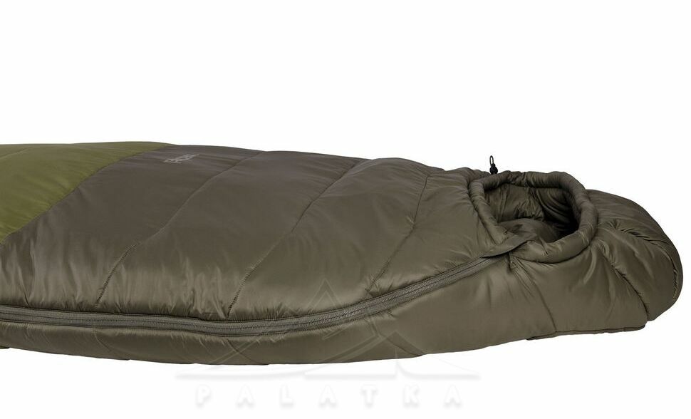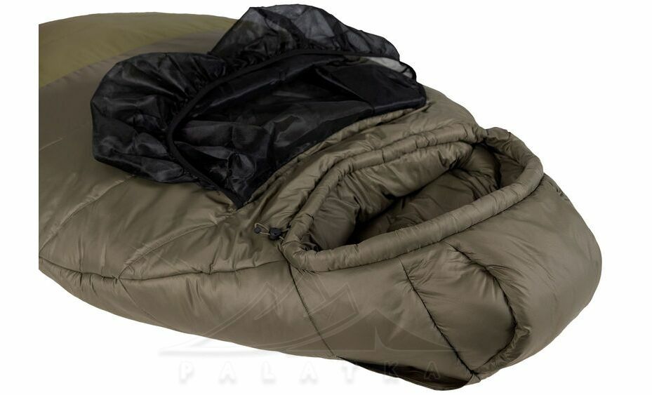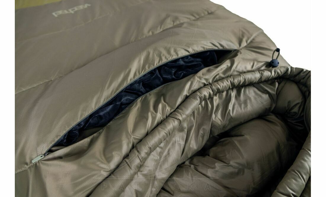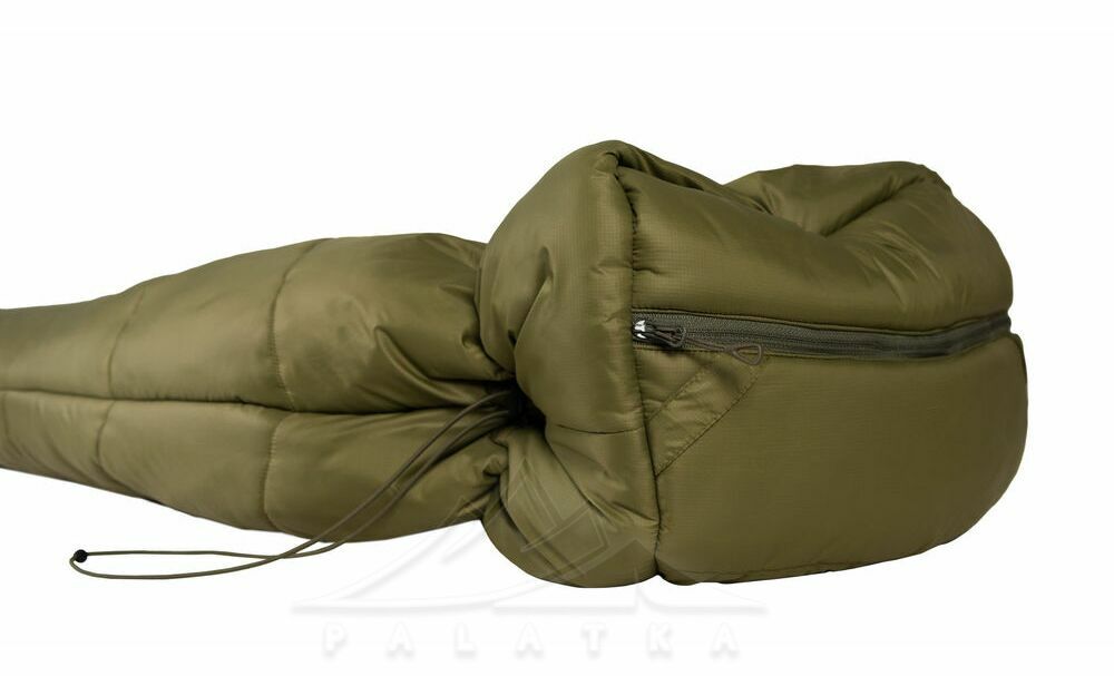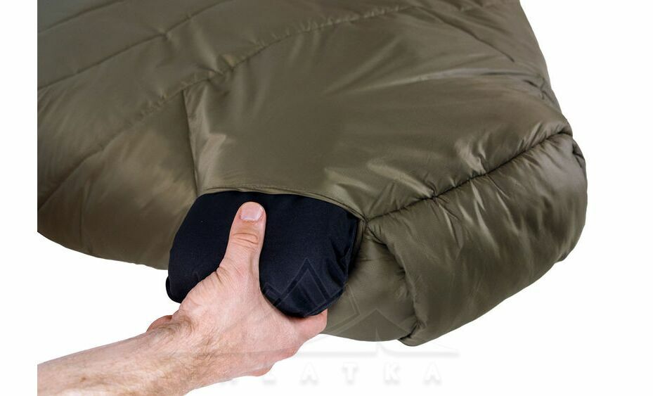 - В нижній частині спальника передбаченна стяжка, яка дозволяє зменшити довжину спальника якщо ваш зріст менший, таким чином прибирається додатковий об'єм повітря всередині, який не потрібно прогрівати своїм теплом.