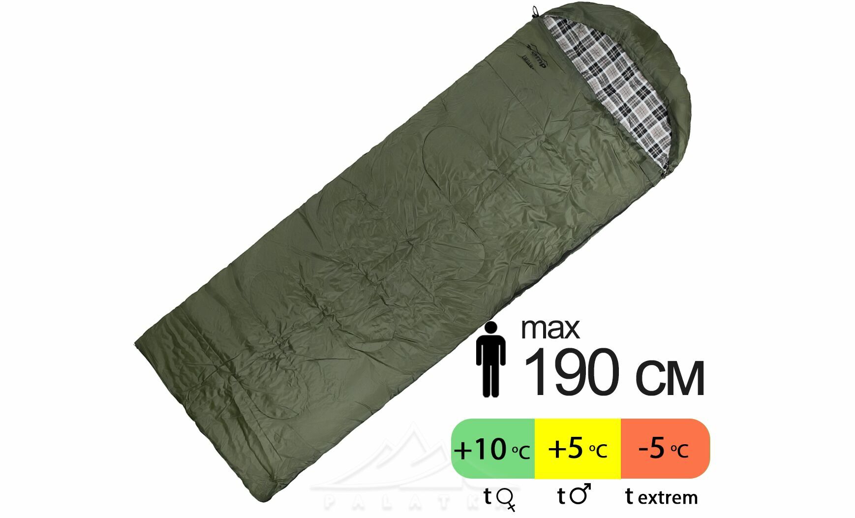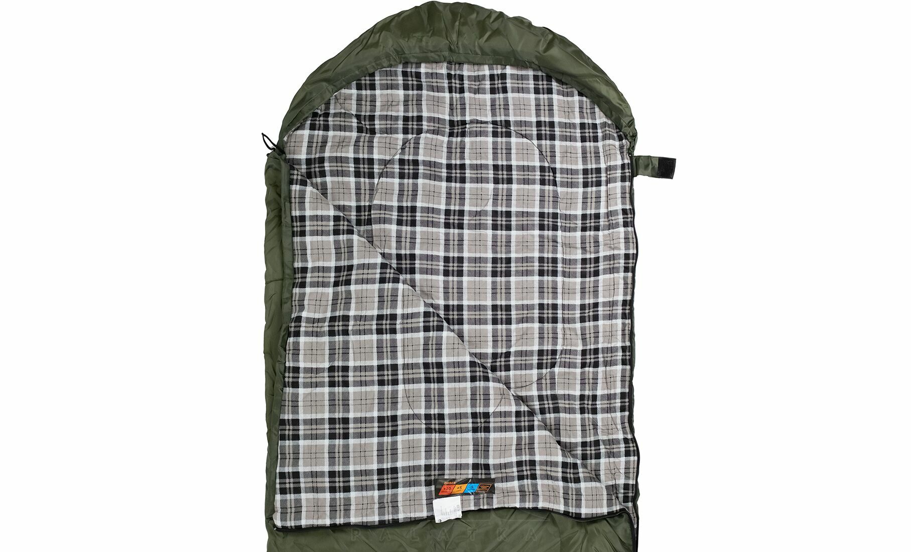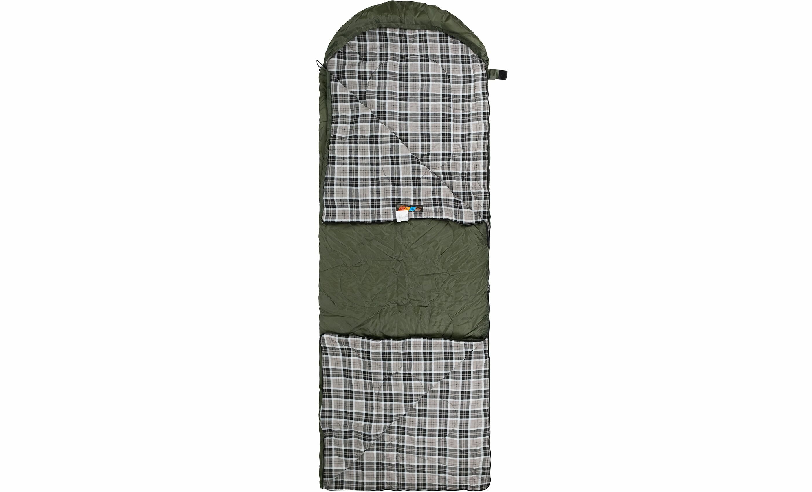 • Спальник має капюшон для кращої теплоізоляції голови та шиї. За потреби його можна повністю розстібнути та використовувати як ковдру.