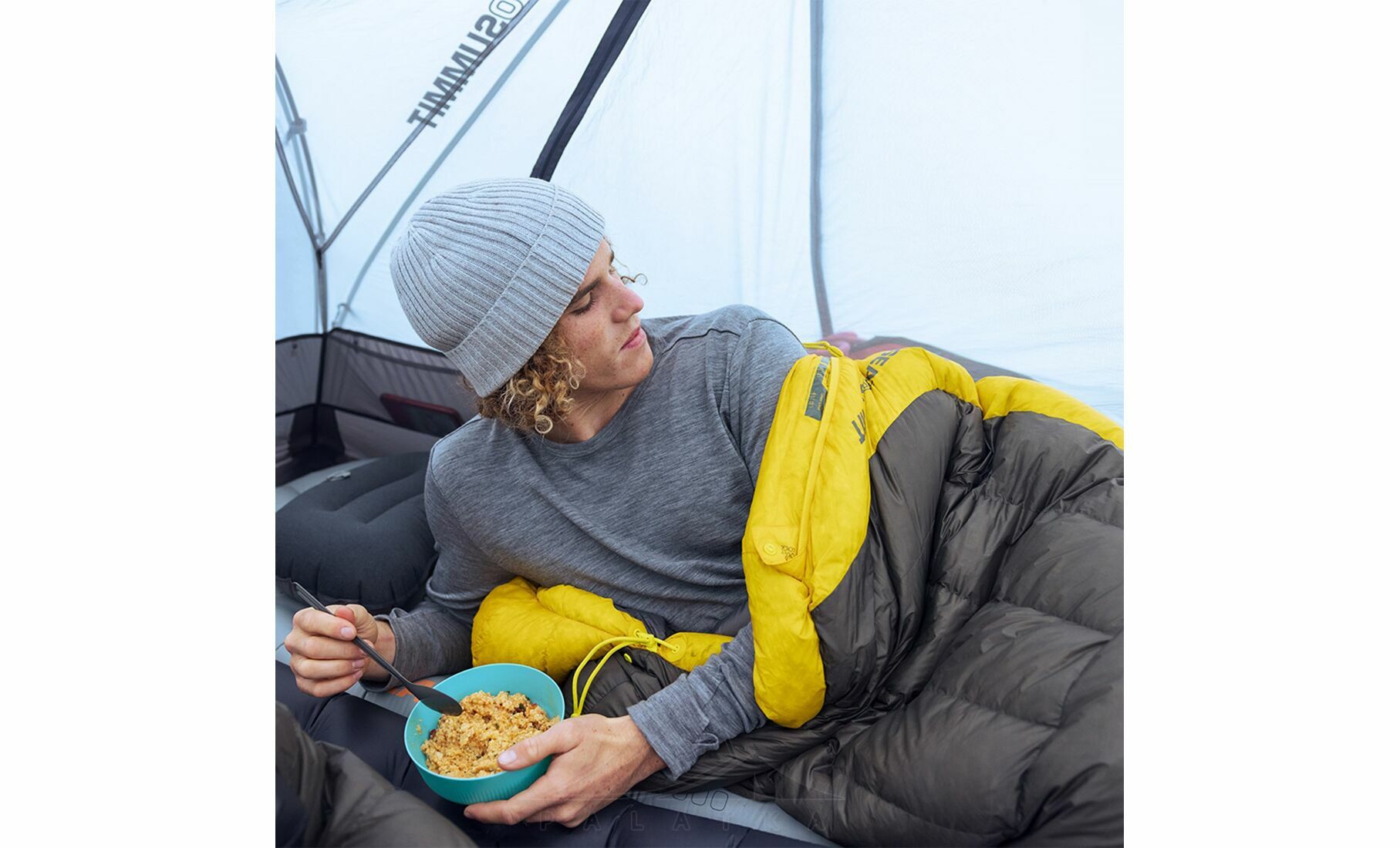 - Ергономічна форма кокона зроблена комфортнішою, ніж у типових ультралегких моделей, тому спальник краще підходить тим, хто не хоче надто тісної посадки уві сні