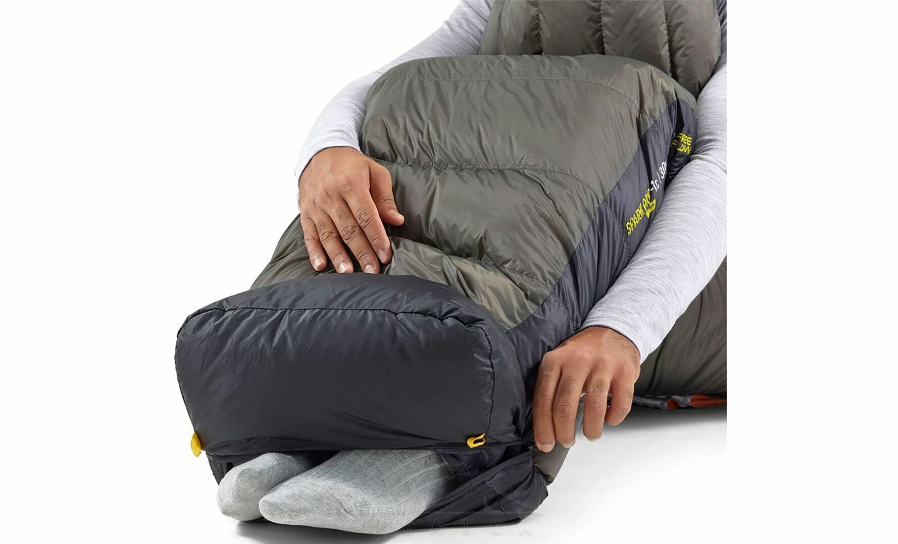 - Блискавка в зоні ніг допомагає точніше регулювати мікроклімат усередині спальника, що особливо корисно в мінливу демісезонну погоду.