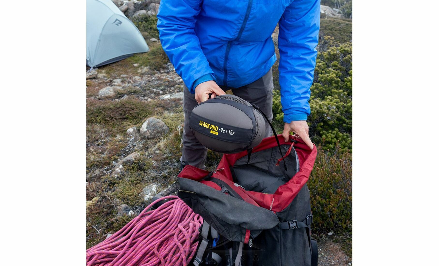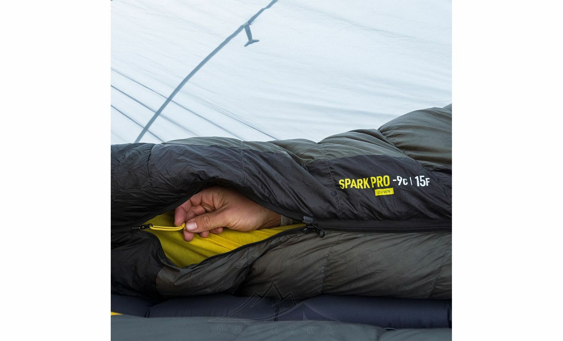 - Легка дихаюча тканина робить спальник комфортнішим у користуванні, а загальна конструкція орієнтована на поєднання тепла, малої ваги і компактного пакування.