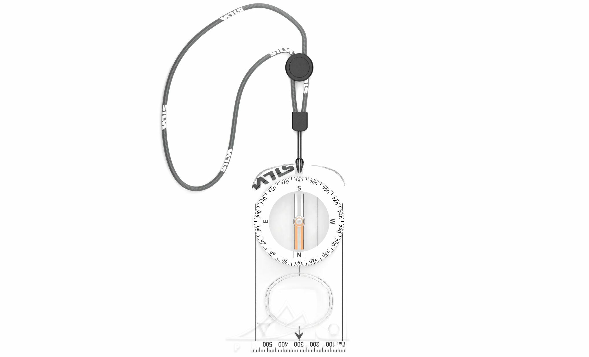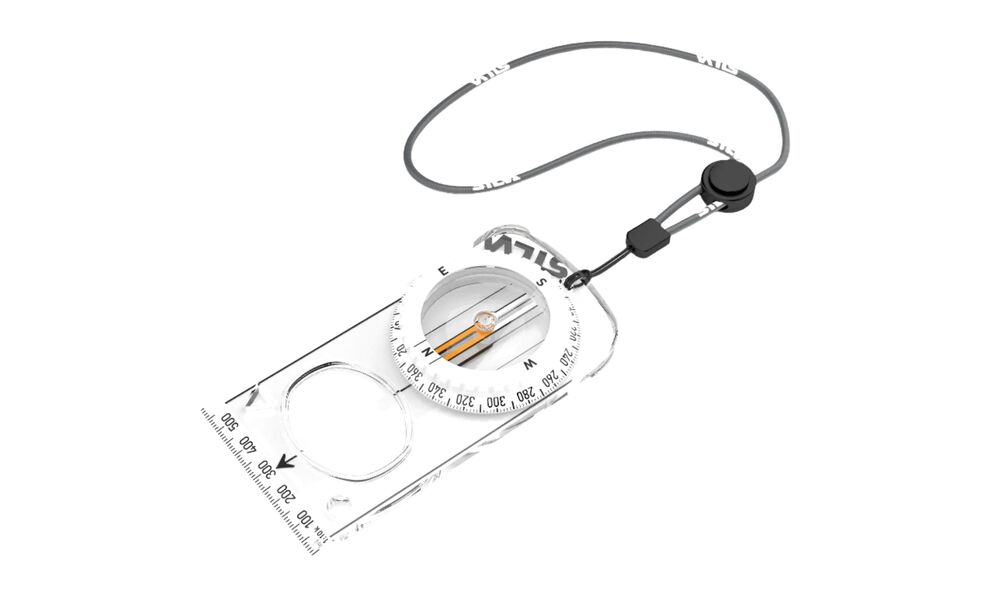 Silva Jet Zoom — компас із поворотним корпусом, градуйованим на 360°, подовженими лініями орієнтування на опорній пластині та трьома змінними лінійками масштабу, а також з великою збільшувальною лінзою.