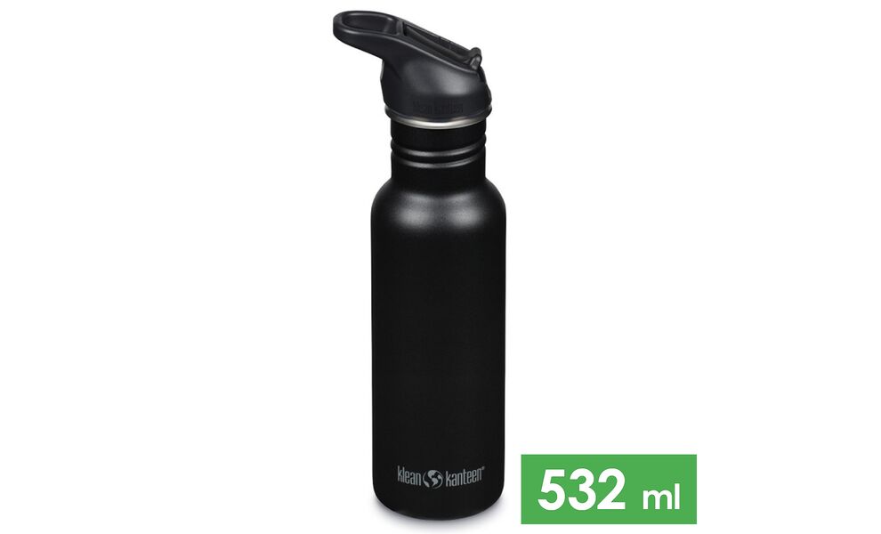 Спортивна пляшка для води з трубочкою Klean Kanteen Classic - Flip Sport (Black) на 532 мл, нержавіюча сталь