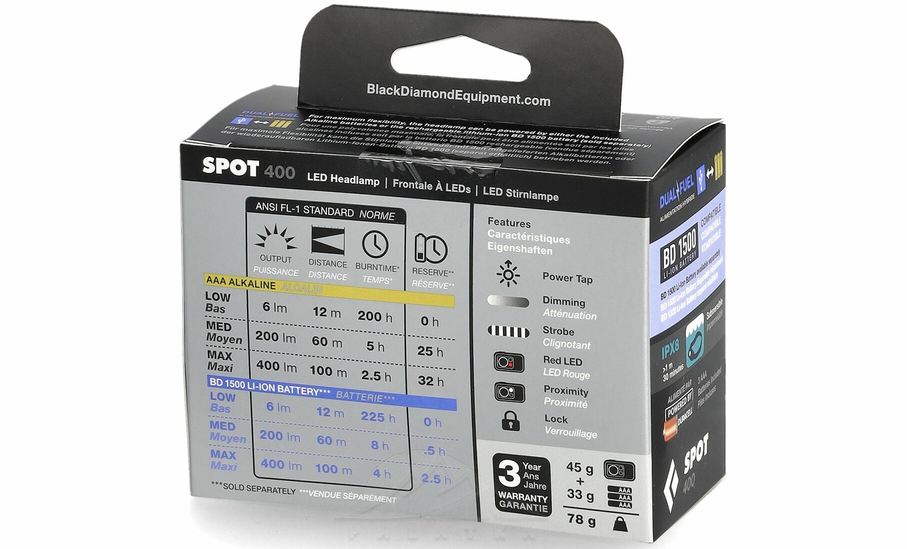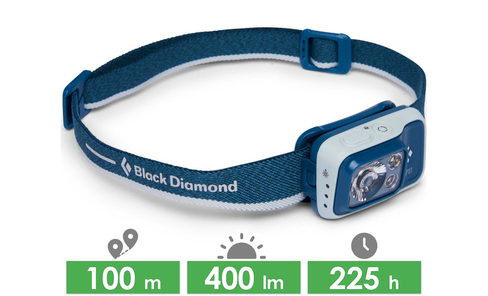 Black Diamond Spot 400  — багатоцільовий налобний ліхтар з плавним регулюванням яскравості та режимами для екстреного освітлення. Універсальна модель для подорожей, спорту або повсякденного життя.