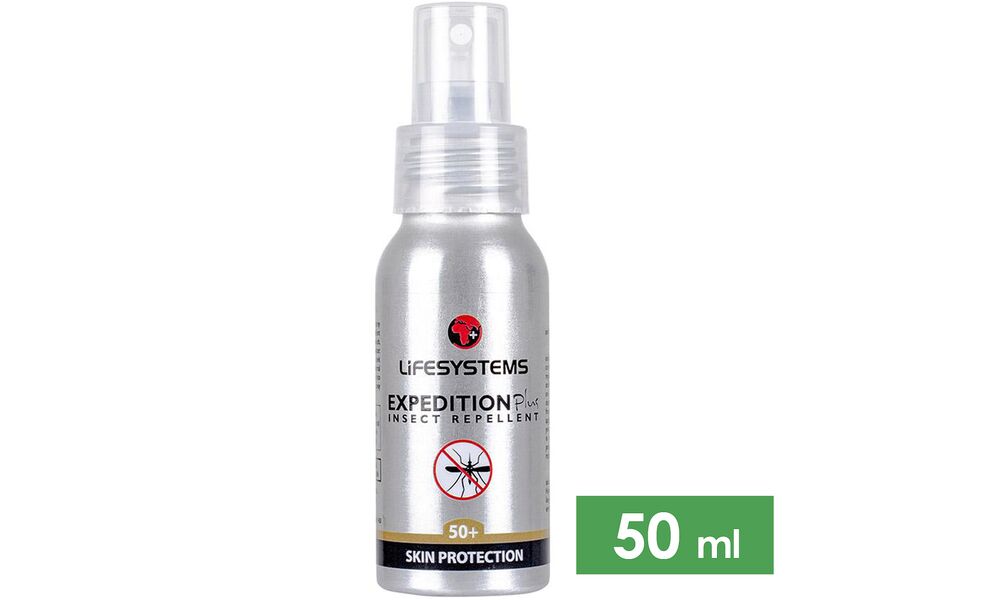 Спрей від комах Lifesystems Expedition 50+ — спрей-репелент подвійної дії, що поєднує ДЕТА (діетилтолуамід) і перметрин для високого захисту від кусючих комах. Підходить до використання в тропічних районах, для захисту від небезпечних захворювань, які переносять комарі, мошки, москіти, кліщі та інші комахи. Безпечний для дітей віком від 6 років.