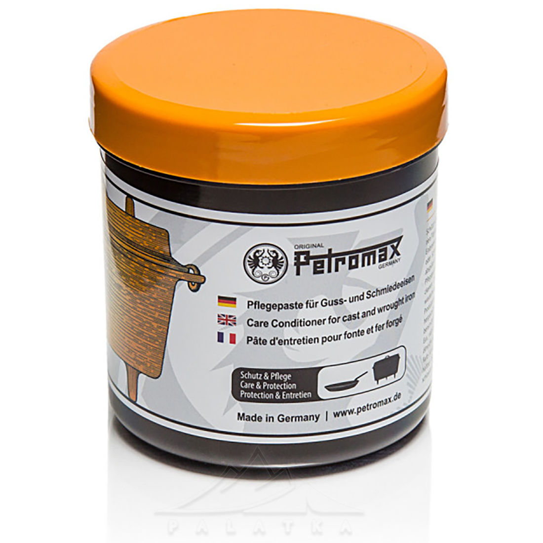 Petromax Care Conditioner — засіб з натуральних інгредієнтів, призначений для захисту попередньо обробленої поверхні посуду з чавуну та кованого заліза. Відмінно підходить для відновлення поверхонь казанів-жаровень Petromax Dutch Oven.