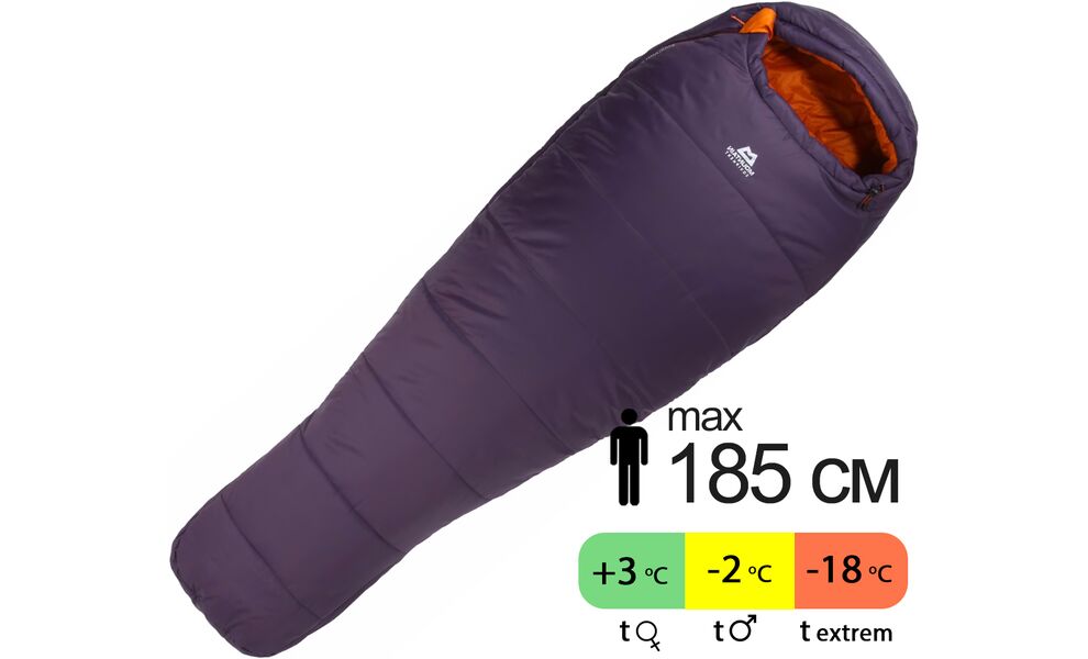 Демісезонний туристичний спальник Mountain Equipment Starlight II - Wmns Long (01419/Aubergine-Blaze) до -2°C: з капюшоном