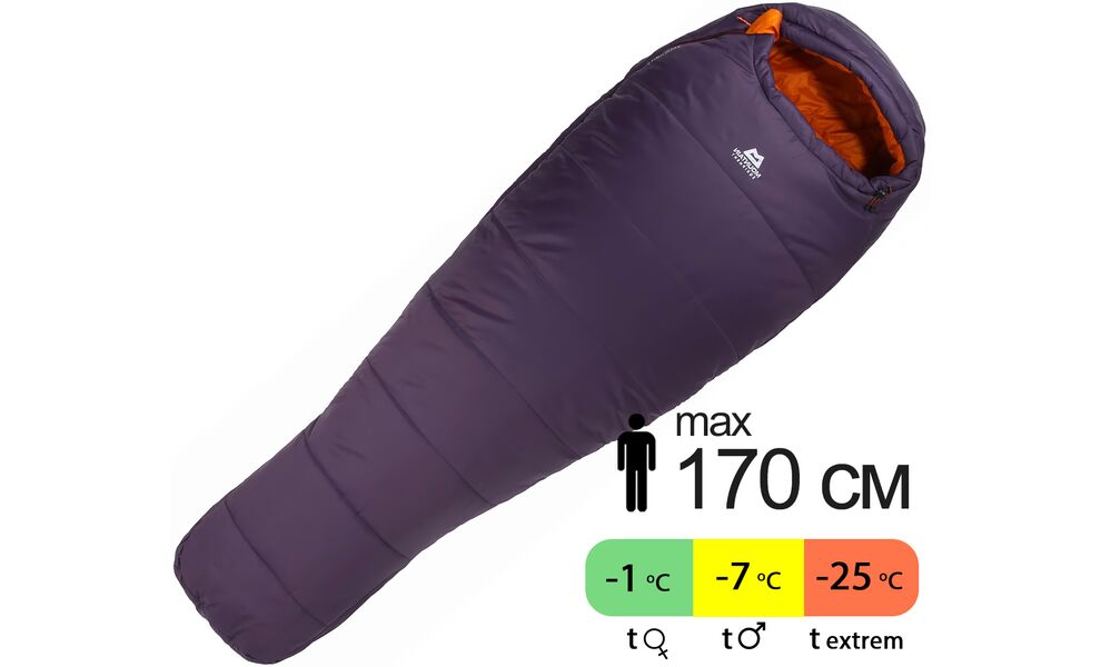 Демісезонний туристичний спальник Mountain Equipment Starlight III - Wmns Regular (01419/Aubergine-Blaze) до -7°C: з капюшоном