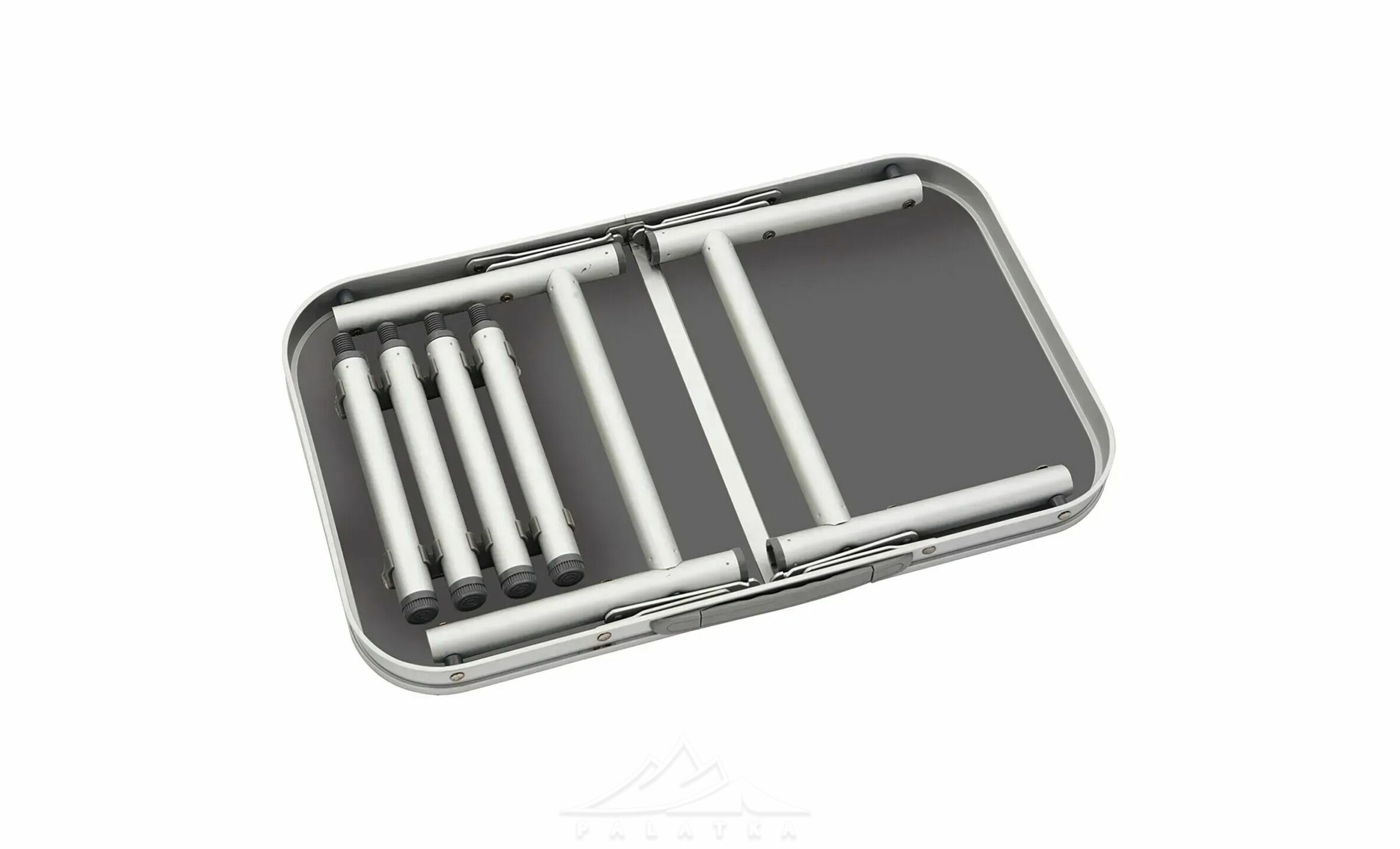 - Алюмінієвий каркас робить конструкцію легшою для перенесення, але при цьому стіл добре витримує практичне повсякденне навантаження