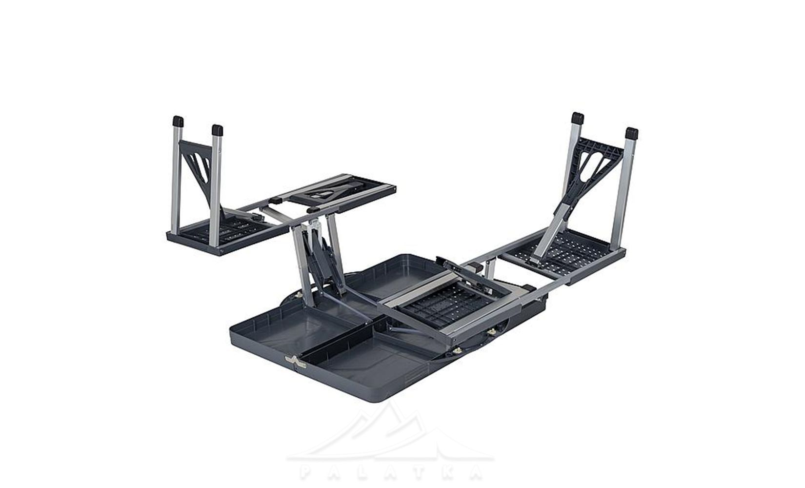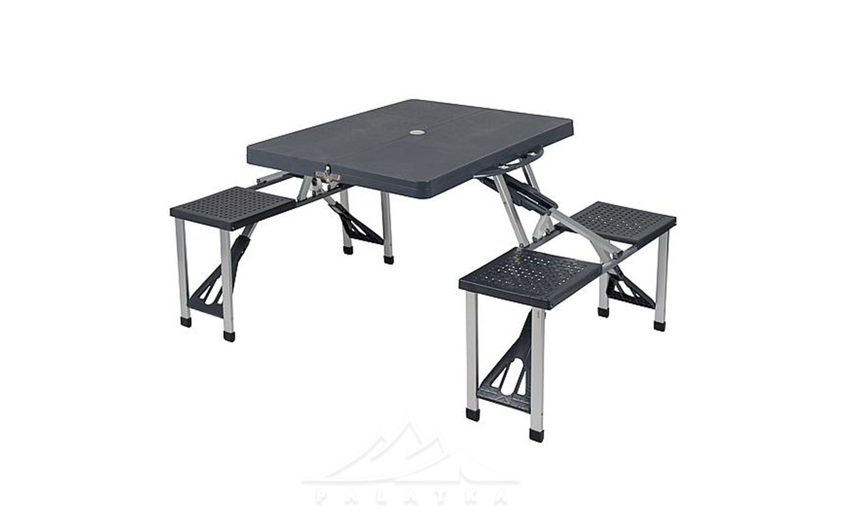 Набір меблів Bo-Camp Basic — компактний набір який складається зі столу-трансформера з 4 табуретами, які скріплені між собою, з максимальним навантаженням 60 кг. Підійде для організації обідньої зони в кемпінгу, на пікніку та в автомобільних подорожах.