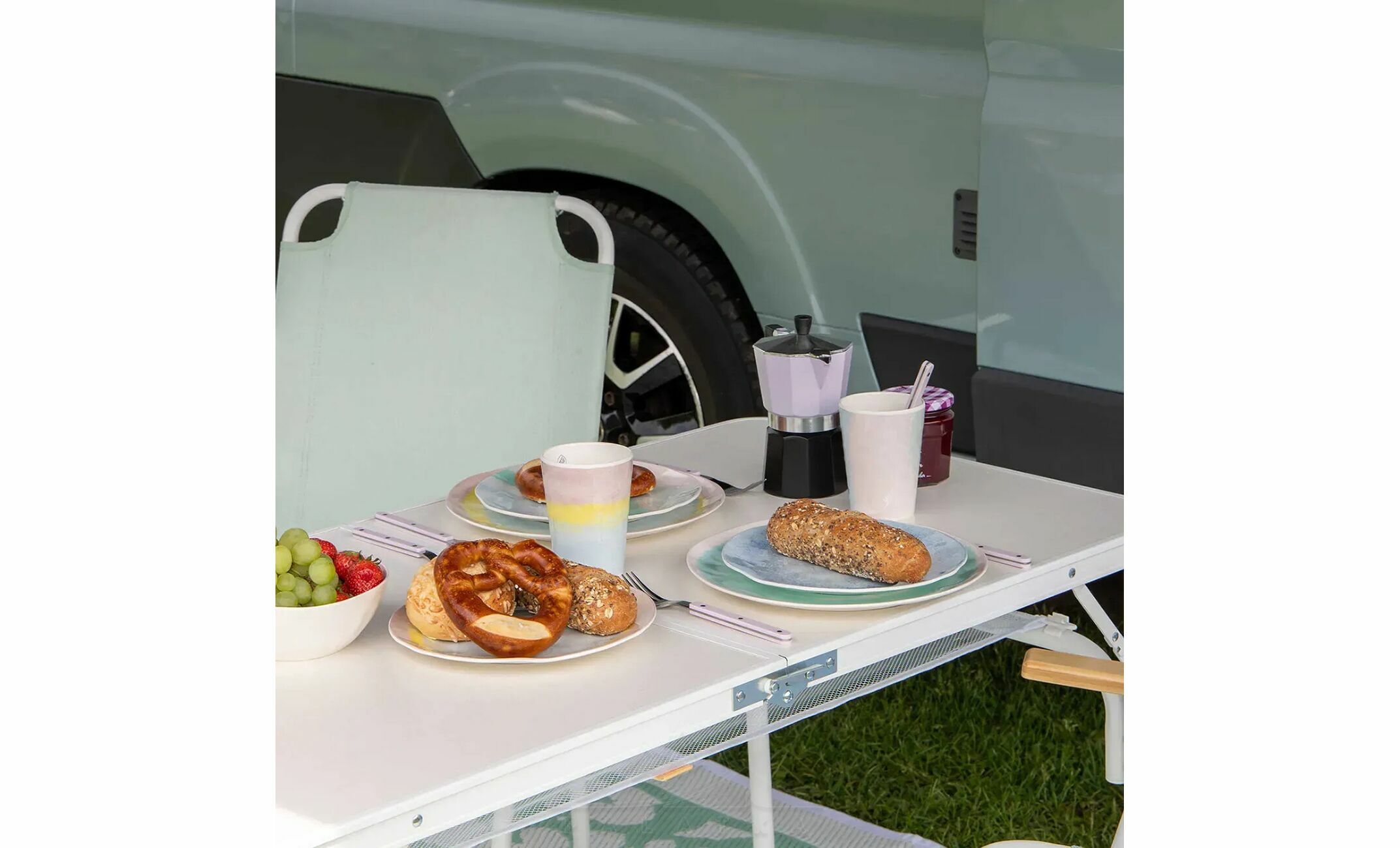 - Два рівні висоти дають змогу підлаштувати стіл під різні сценарії використання: нижче для більш розслабленого формату на природу, вище для повноцінної посадки зі стільцями або сервірування