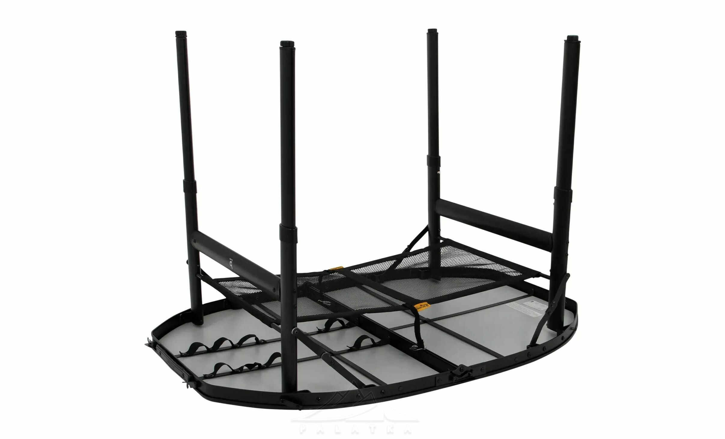 - Два рівні висоти дозволяють підлаштувати стіл під різні сценарії використання: нижче для більш розслабленого формату на природу, вище для повноцінної посадки зі стільцями