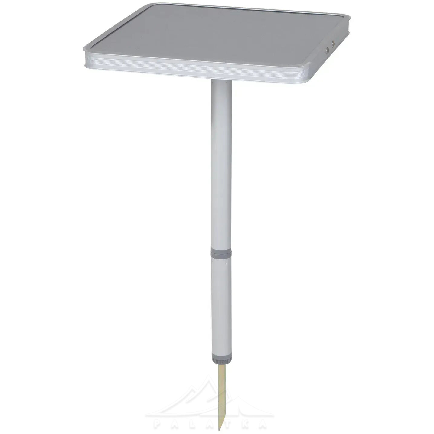 - Конструкція на одній ніжці зі сталевим штирем дозволяє швидко встановити стіл прямо в землю, тому він особливо зручний для природи, риболовлі або відпочинку на піщаному чи м’якому ґрунті