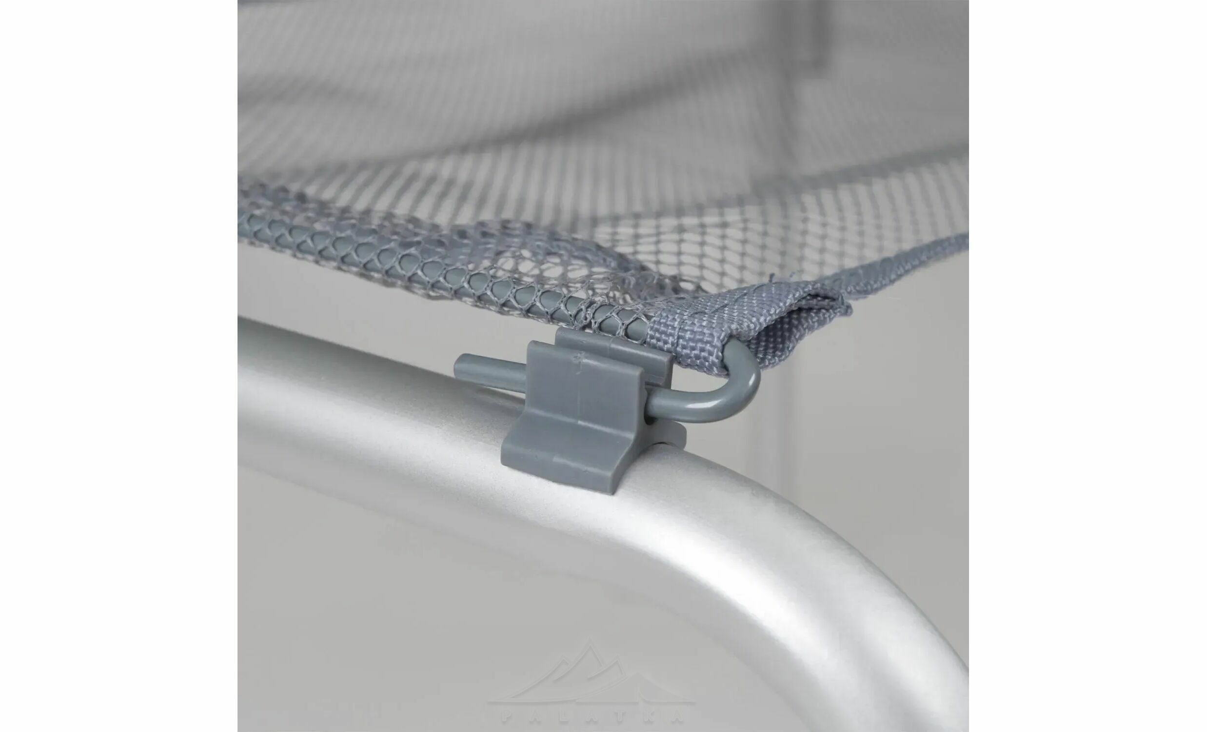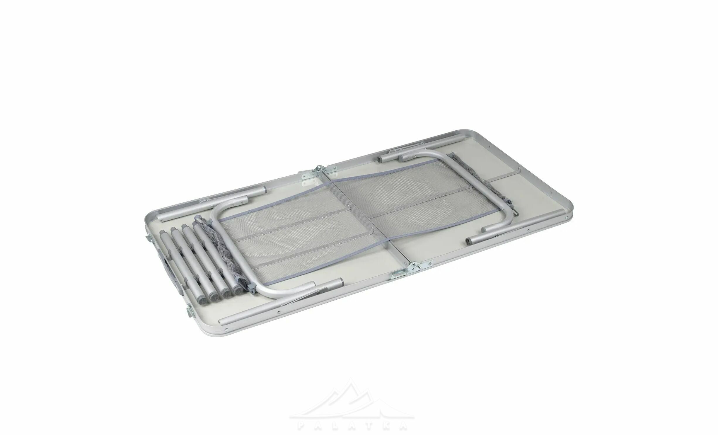 - Алюмінієвий каркас робить стіл легшим для транспортування, але при цьому конструкція добре підходить для практичного навантаження під час відпочинку