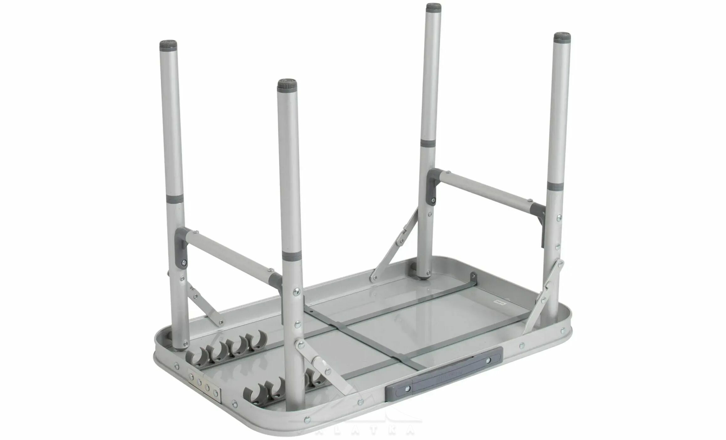 - Алюмінієвий каркас робить стіл легким для перенесення, але при цьому конструкція добре витримує практичне повсякденне навантаження