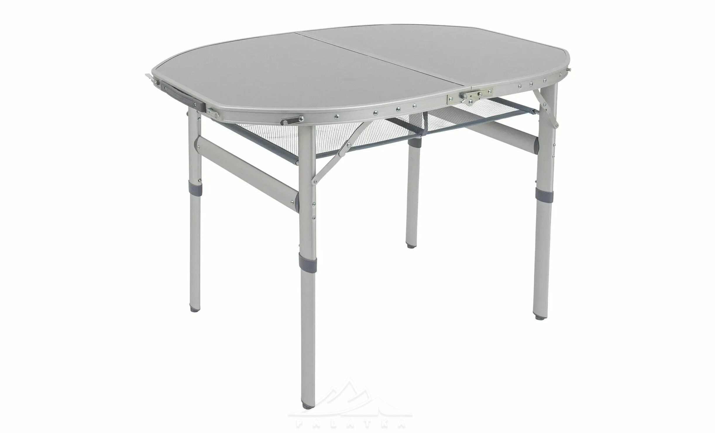 - Алюмінієвий каркас поєднує легкість і практичність, тому стіл зручно перевозити, але при цьому він добре витримує повсякденне навантаження