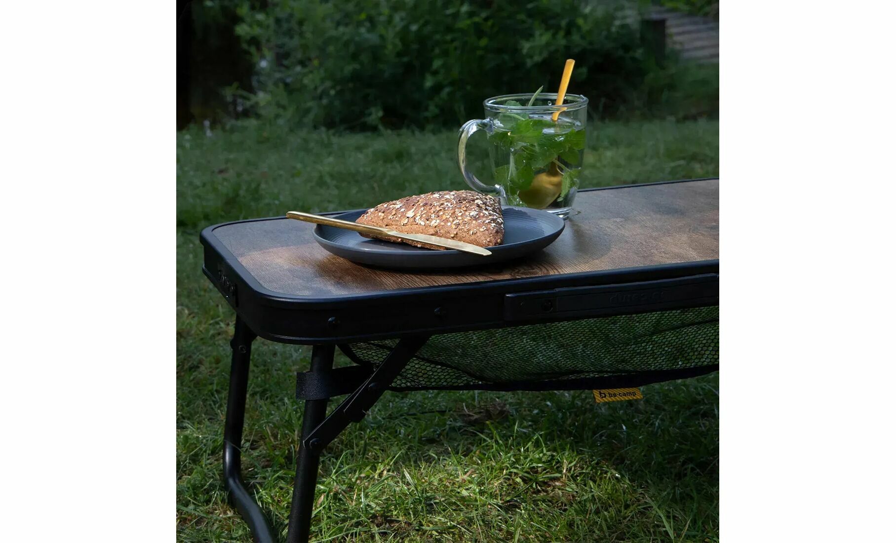 - Компактний формат добре підходить для природи, коли не потрібен великий обідній стіл, а достатньо зручної поверхні для напоїв, перекусу чи потрібних дрібниць