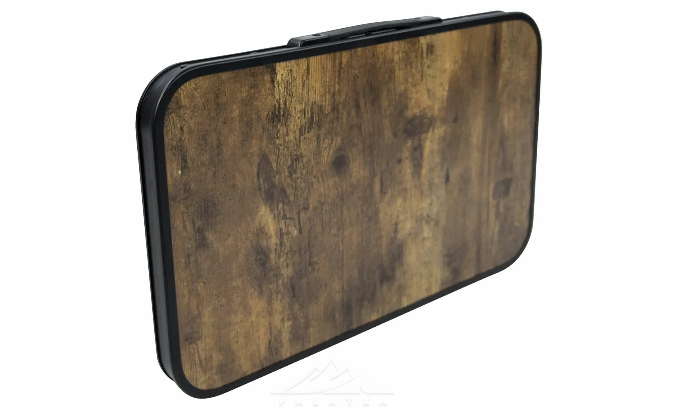 - Стільниця з МДФ з оздобленням під дерево виглядає акуратно і додає більш затишного вигляду, тому столик приємно використовувати не лише для природи, а й удома