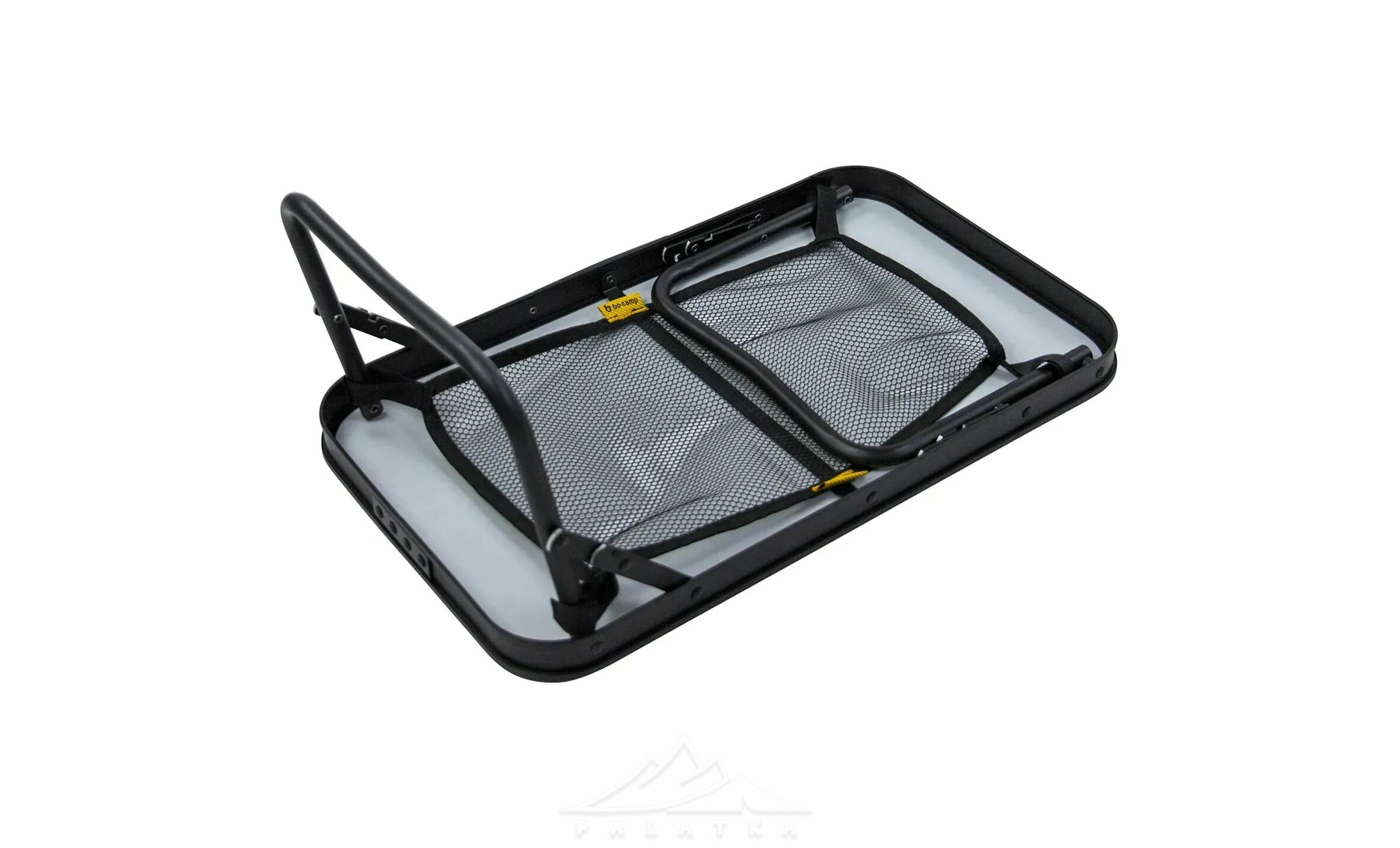 - Завдяки сітчастій полиці стіл зручніше тримати в порядку під час відпочинку, не захаращуючи саму стільницю