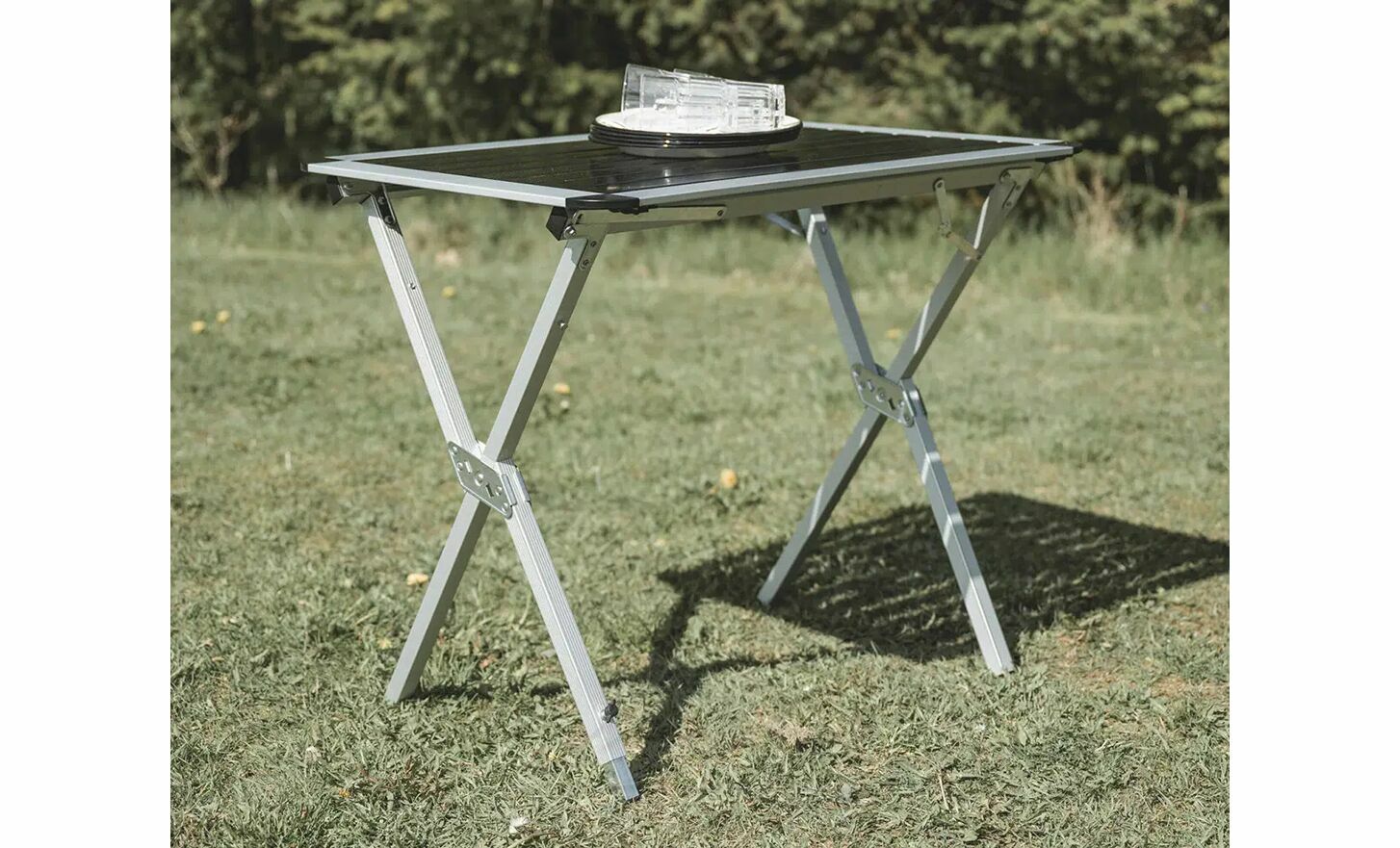 • Каркас та стільниця виготовлені з алюмінію: легкий, міцний, не піддається корозії та стійкий до пошкоджень.