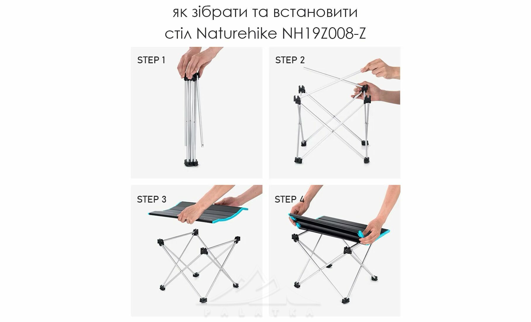 Стіл Naturehike NH19Z008-Z — компактний складний стіл з міцного алюмінію для туризму та активного відпочинку. Простий в збірці та зручний для зберігання