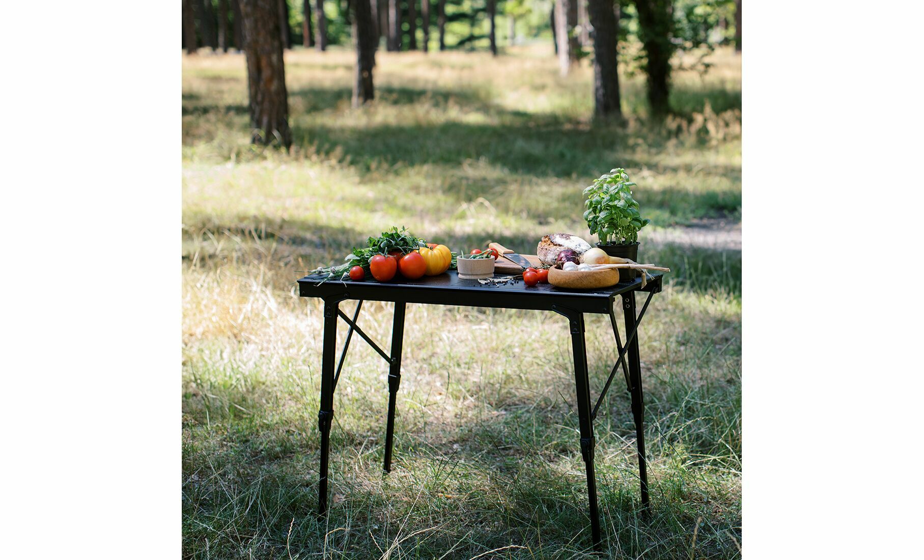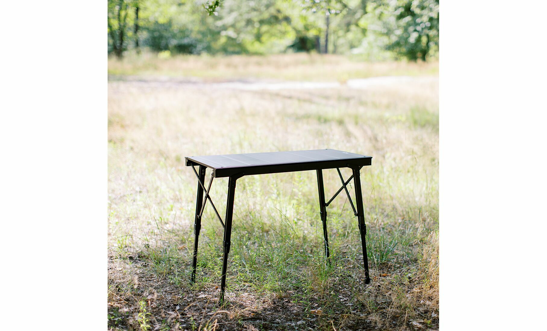- Висота ніжок регулюється в межах 44–68 см, що дозволяє зручно налаштувати стіл відповідно до зросту користувача або умов місцевості.
