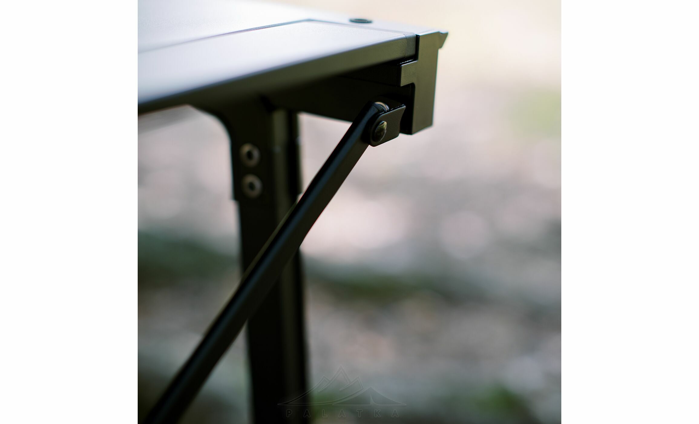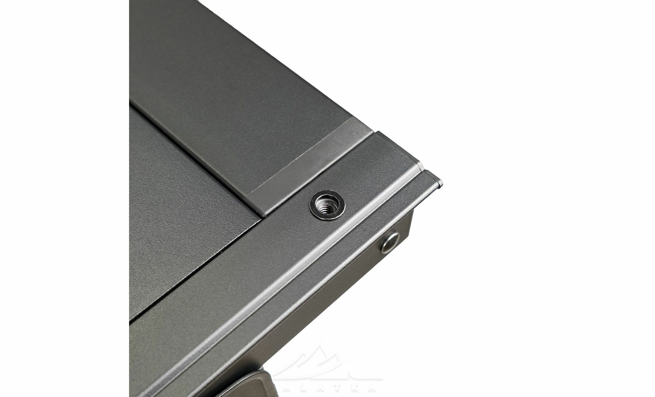 - Каркас та стільниця виготовлені з алюмінію: легкий, міцний, не піддається корозії та стійкий до пошкоджень.