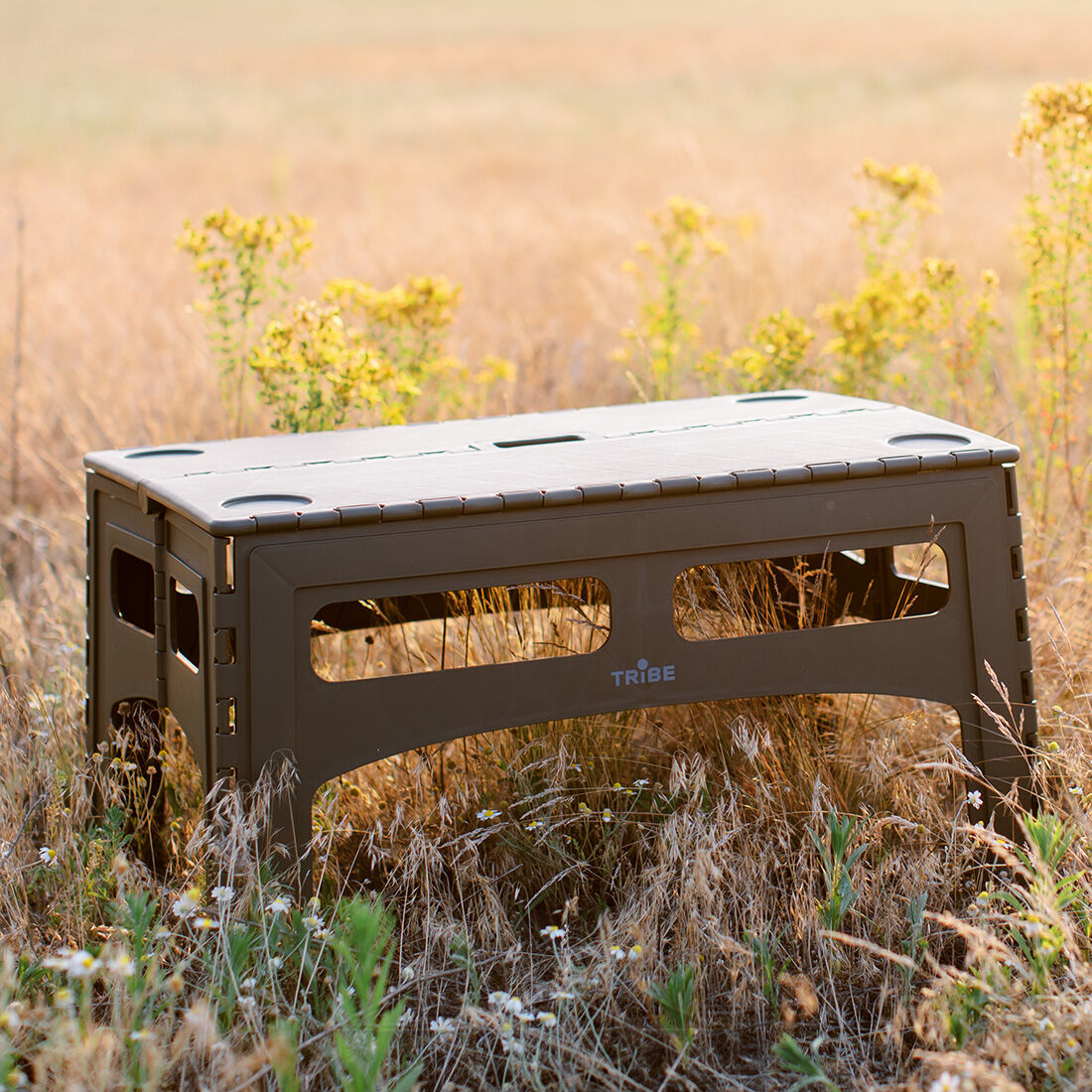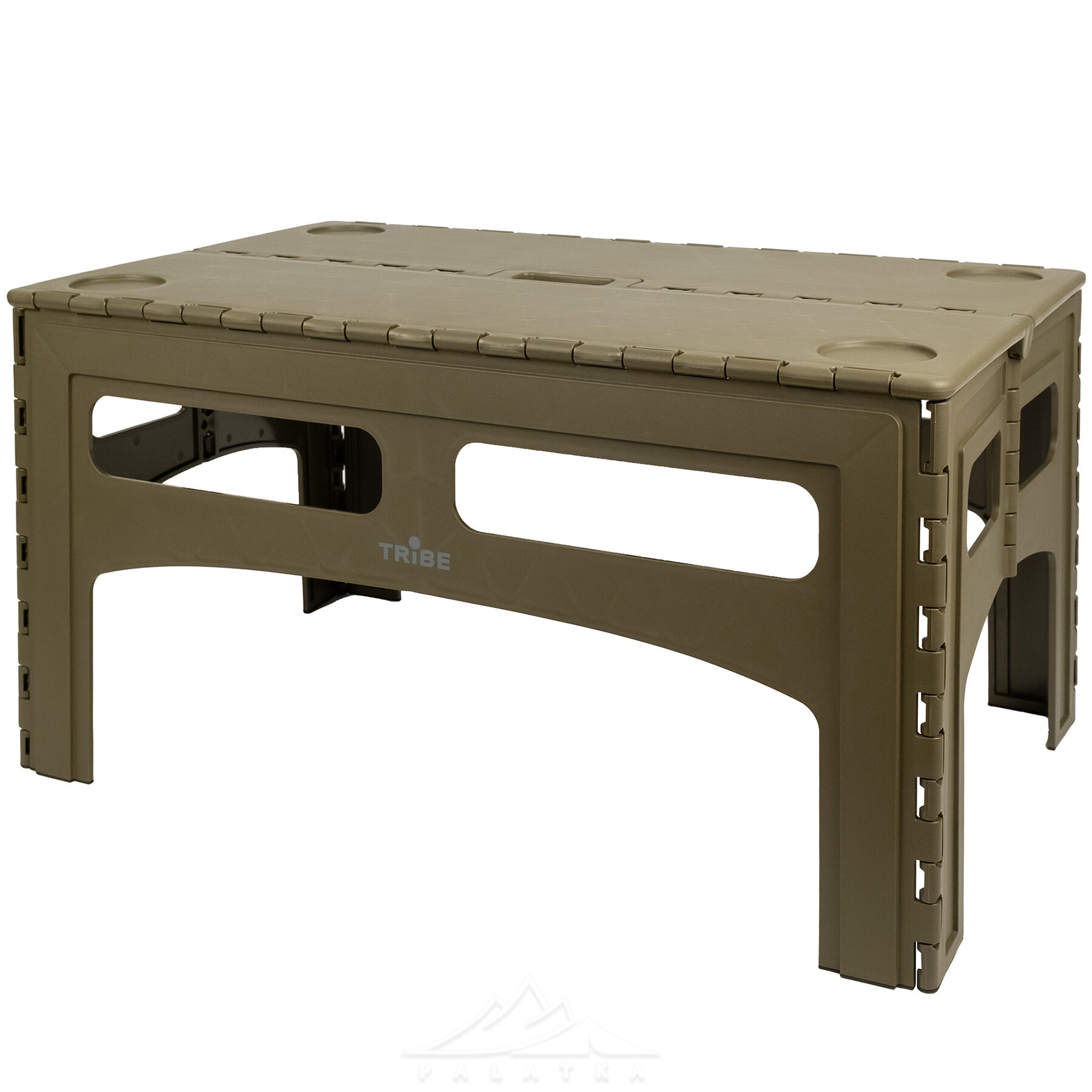 Tribe Camp Table Low — складний портативний стіл із міцного пластику. Ідеально підходить для кемпінгу, відпочинку на природі та риболовлі.